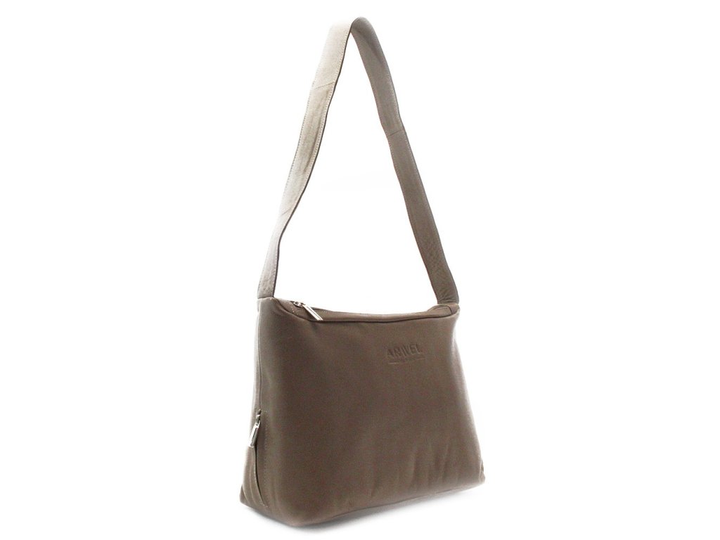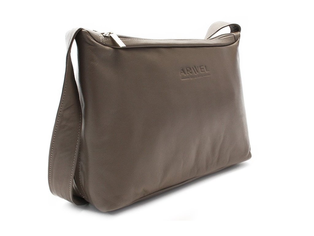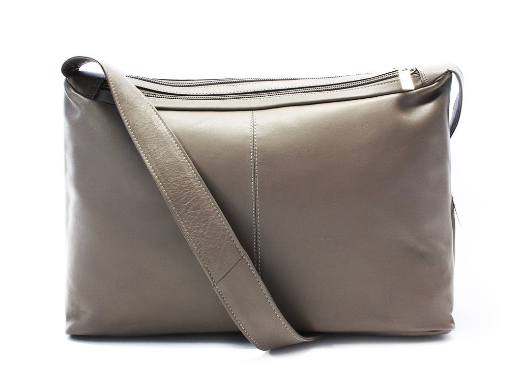 Hnedošedá kožená dvojzipsová kabelka so širokým popruhom 212-4003-26