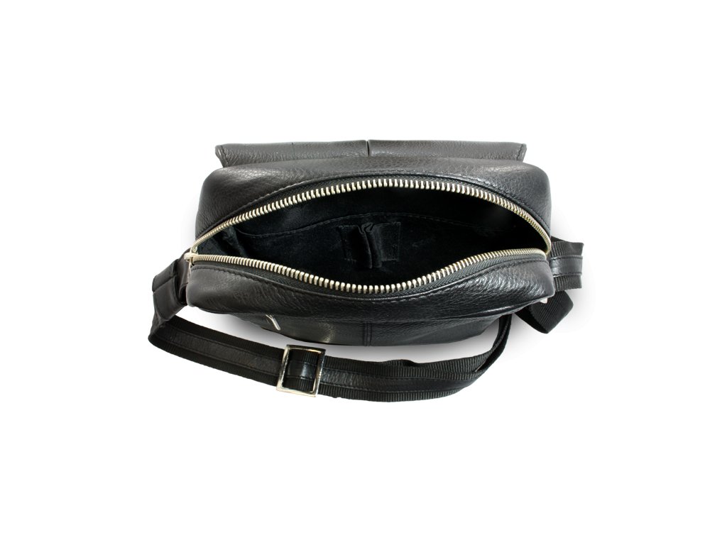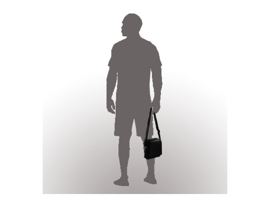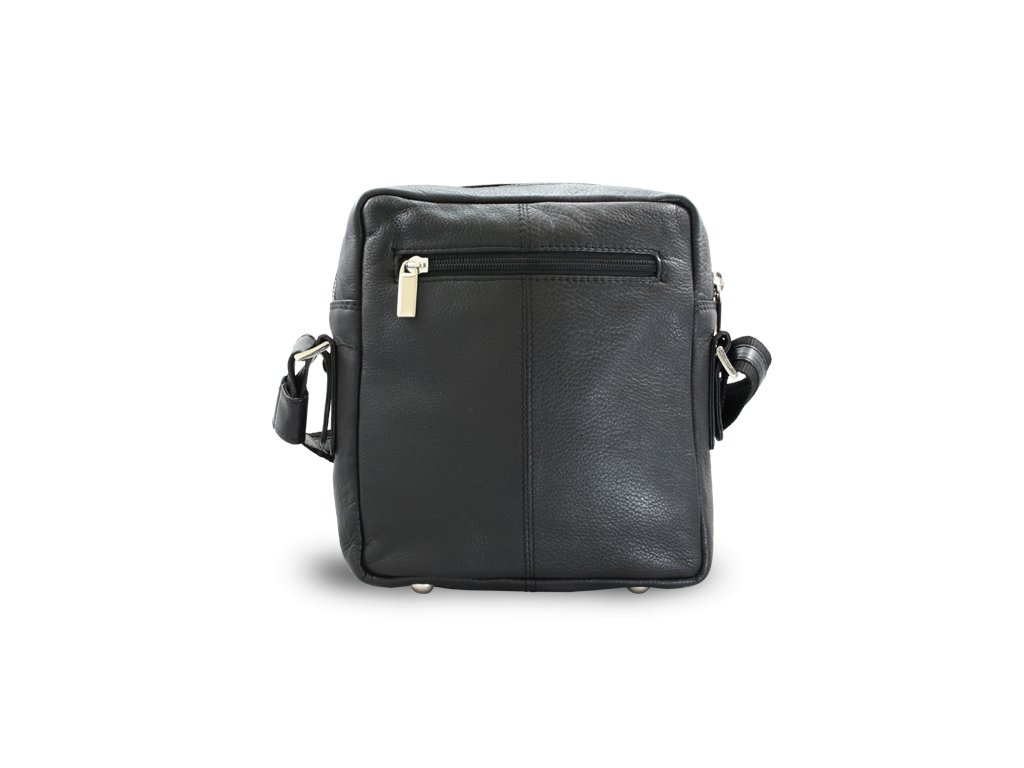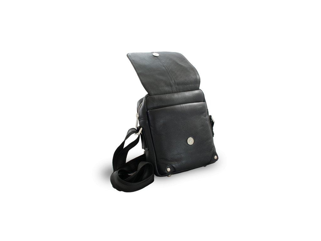 Zipsové vrecko pod poklopom s magnetickým uzáverom. Vrecko so zipsom po hornej strane obsahuje zipsové vrecko, väčšie vrecko a vrecko na mobil. Zadné vonkajšie zipsové vrecko. Pútko na prichytenie na opasok. Posilnenie rohov kovovými cvočkami. Nastaviteľný koženo-textilný popruh v max. dĺžke 140 cm.