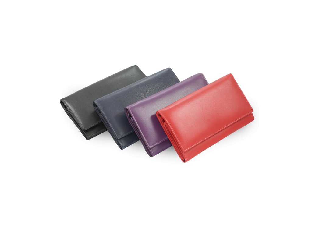 Široká priehradka na bankovky, klopnové vrecko na mince, 6 vreciek na kreditné karty. 3 veľké vnútorné a 1 zipsové vrecko, 1 zipsové a 1 otvorené zadné vrecko.