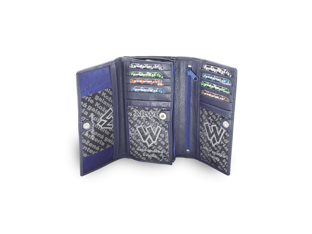 Modrá dámska listová kožená peňaženka s poklopom 511-2120-97
