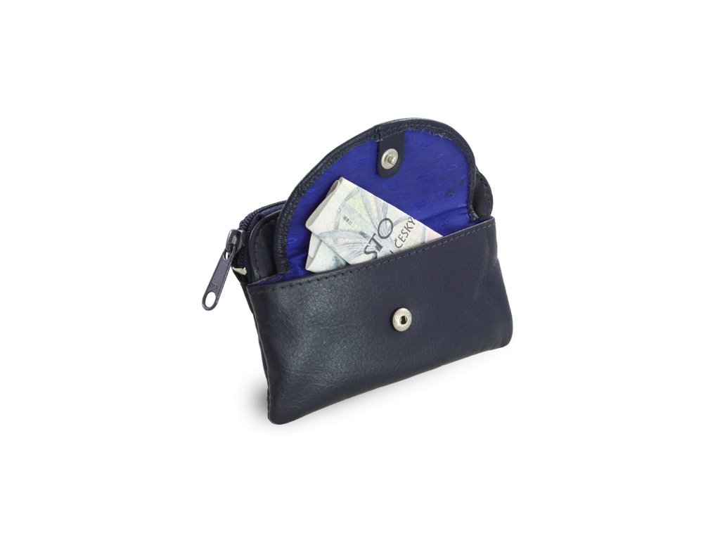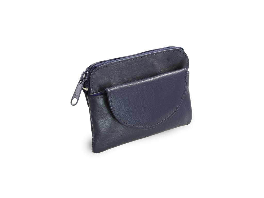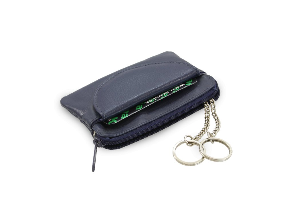 Modrá kožená kľúčenka so zipsovým a poklopovým vreckom 619-0365-97