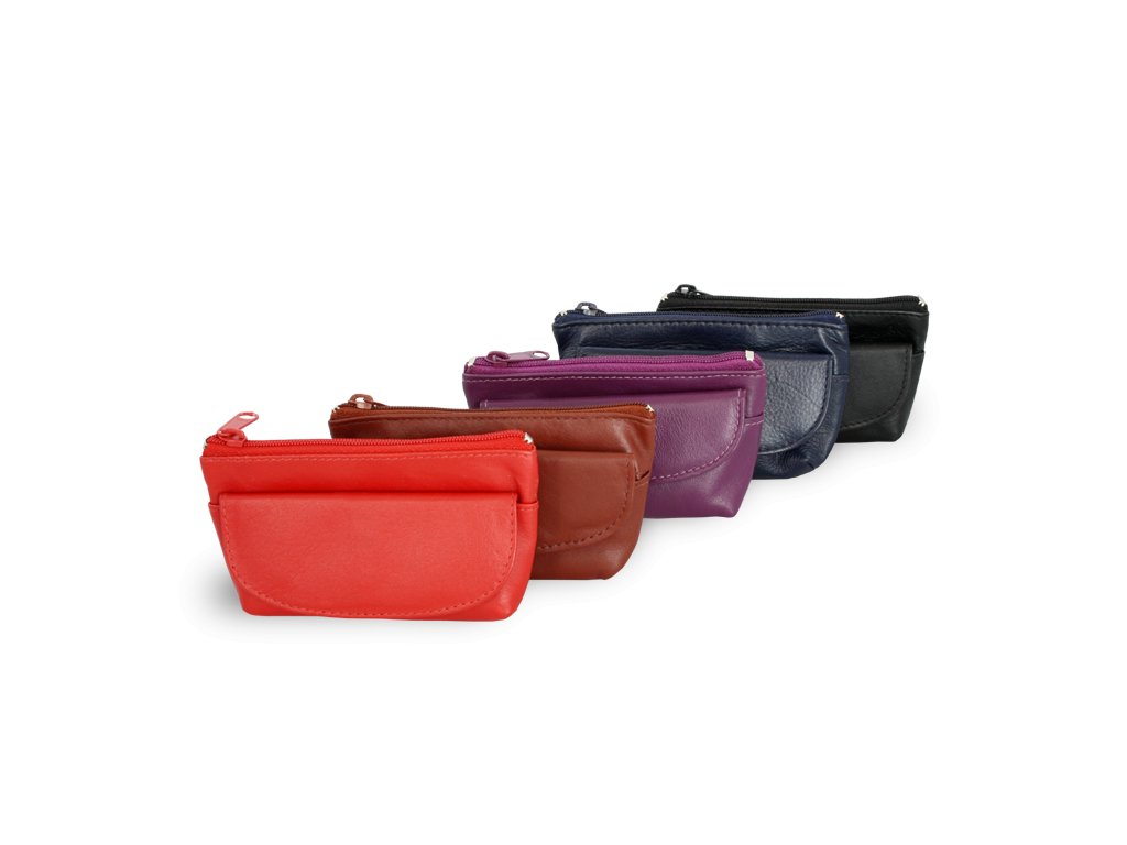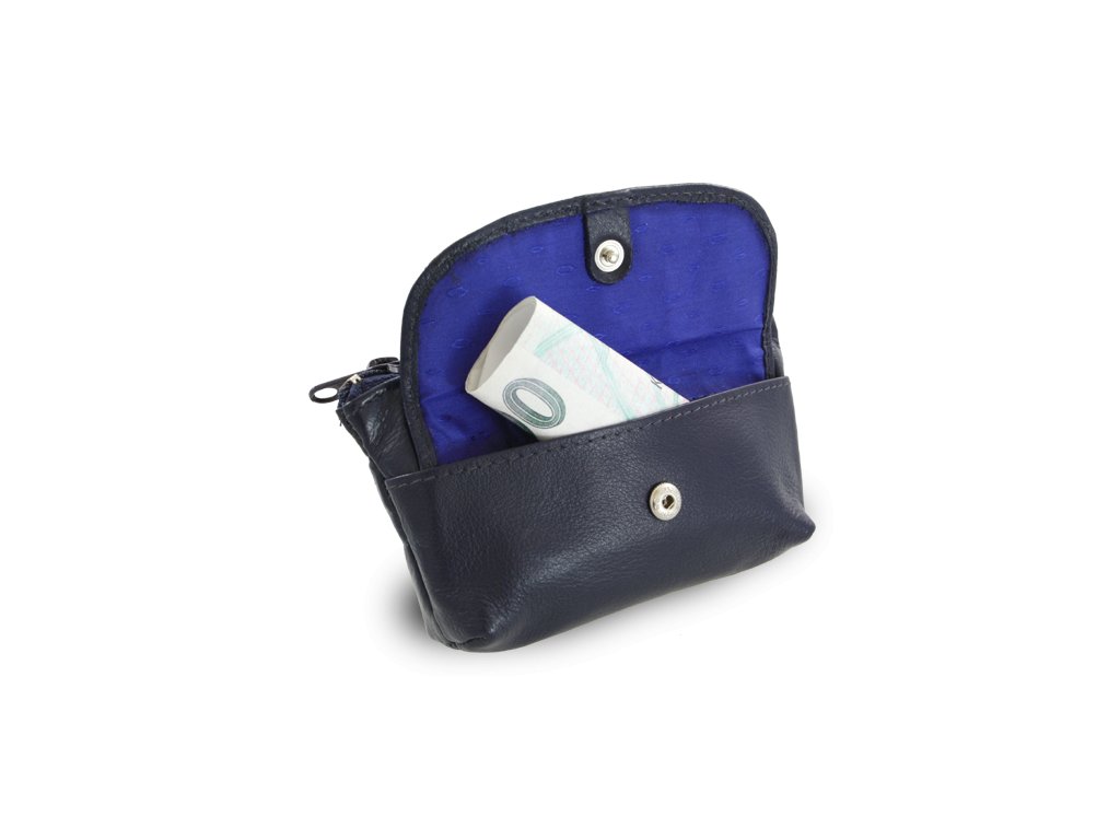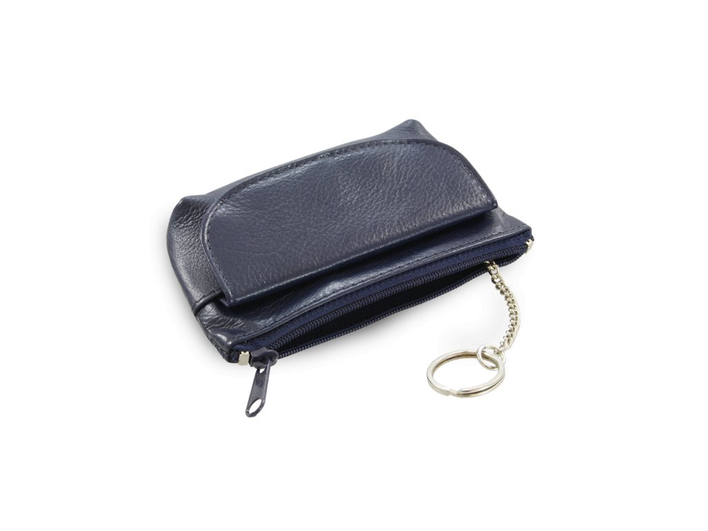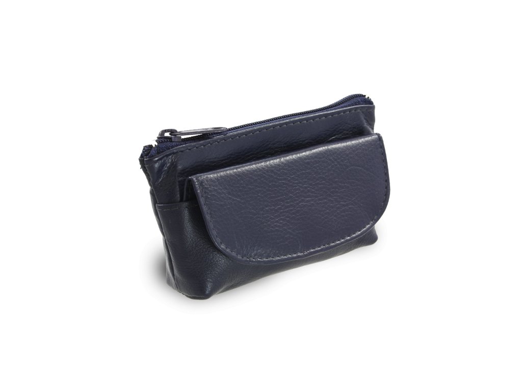 Modrá kožená kľúčenka so zipsovým a poklopovým vreckom 619-0369-97