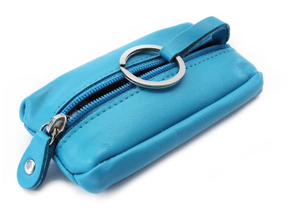Modrá kožená kľúčenka so zipsovým vreckom 619-2418-91