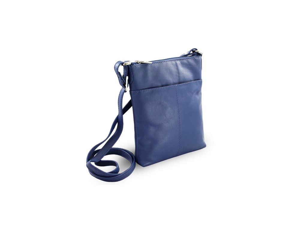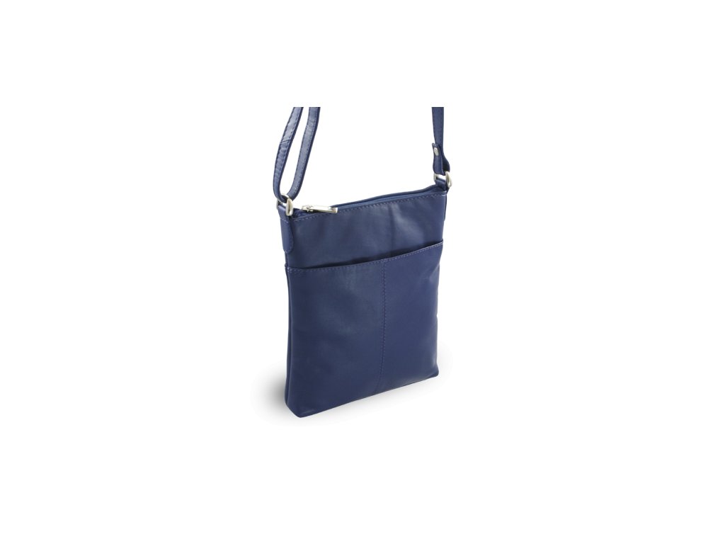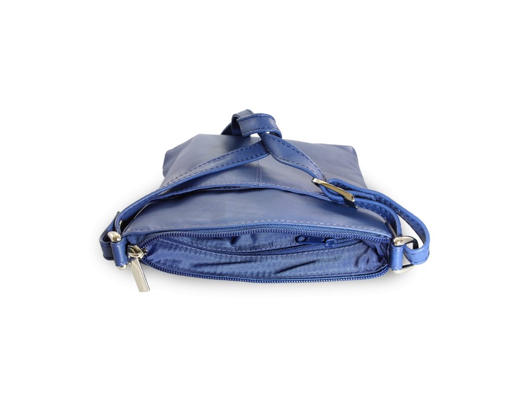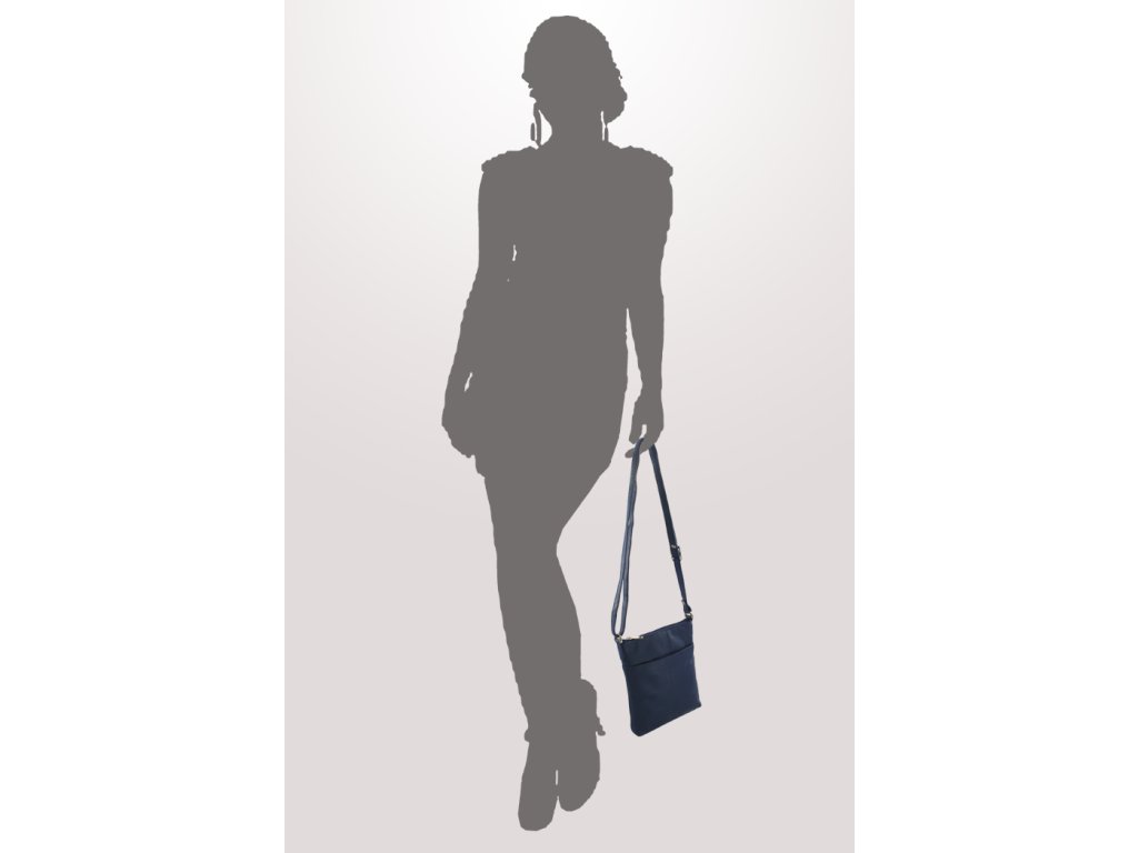 Vnútorné zipsové vrecko, odopínateľný krúžok na kľúče, zrkadlo v koženom púzdre, vonkajšie zipsové a otvorené vrecko, nastaviteľný kožený popruh v max. dĺžke 140 cm.