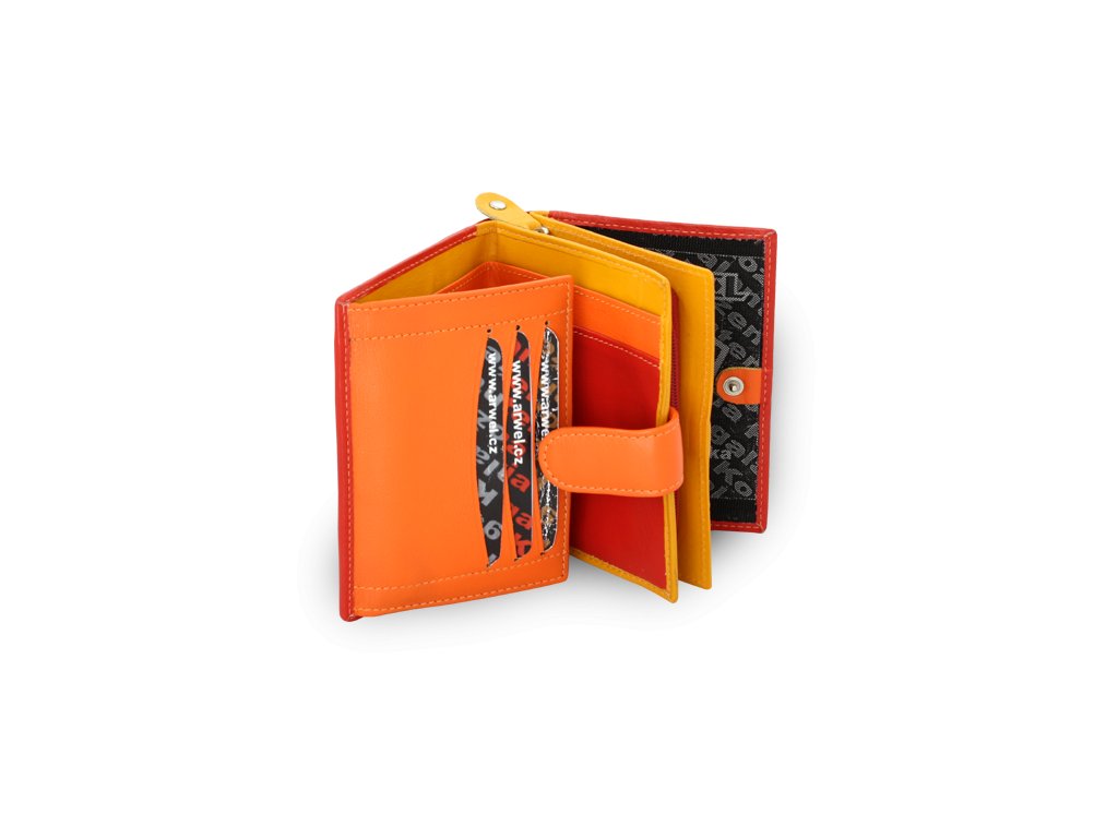 - vnútro peňaženky zložené z červenej, oranžovej a žltej