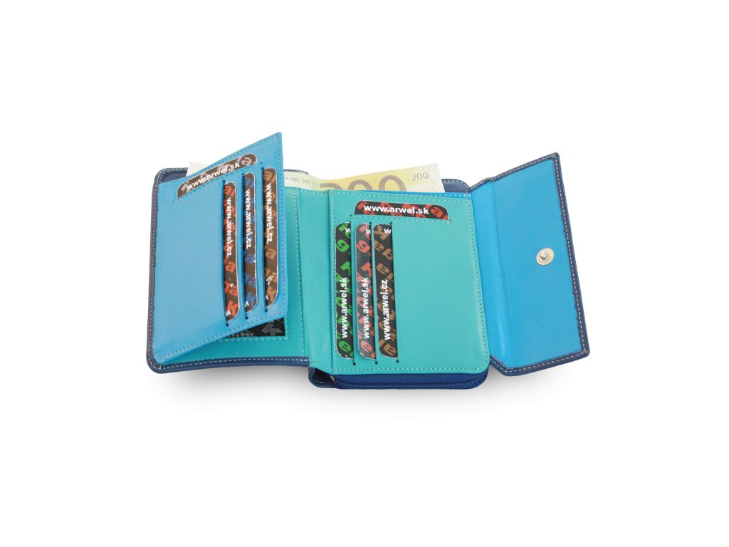 Multimodrá dámska kožená peňaženka s malou poklopom 511-2221-M97