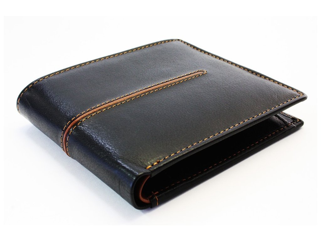 Praktická pánska kožená peňaženka obsahuje 2 priehradky na bankovky, 1 vrecko s poklopom na mince, 4 vrecká na kreditné karty, 1 menšie a 2 veľké vrecká na dokumenty.