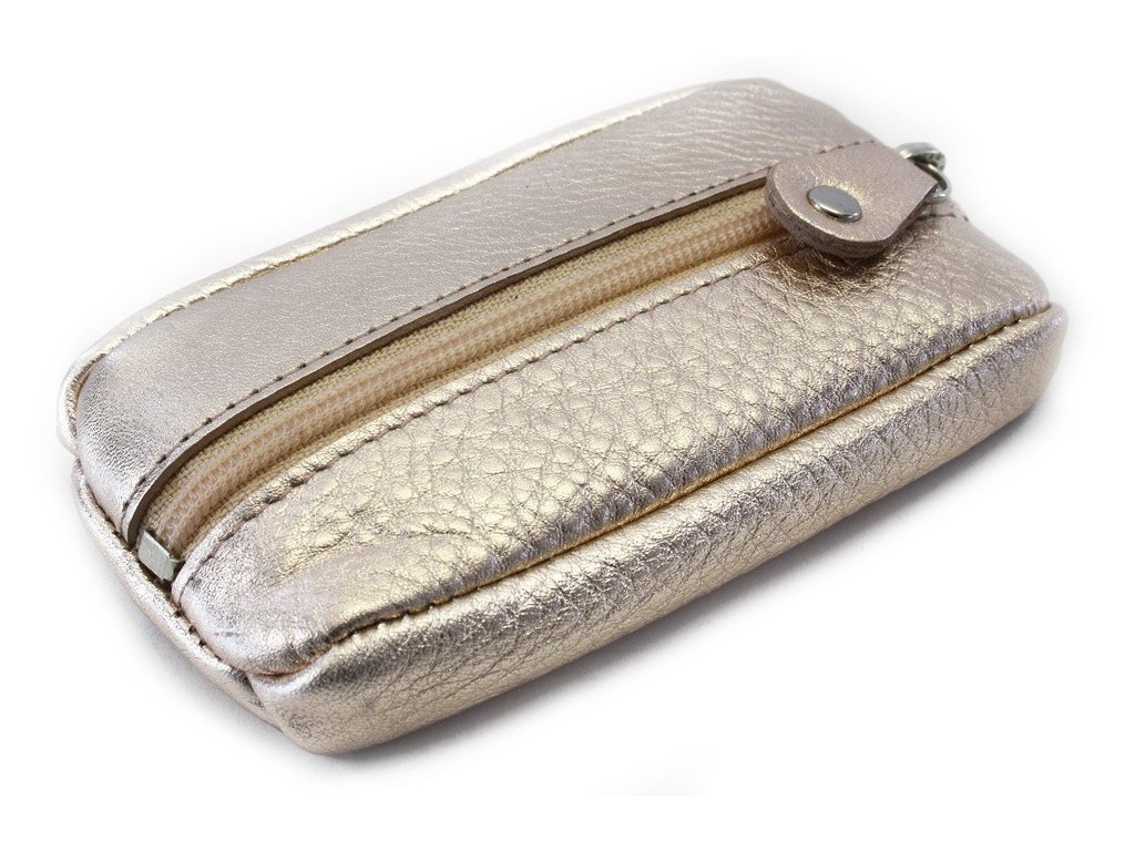 Ružovozlatá kožená kľúčenka so zipsovým vreckom 619-2418-01