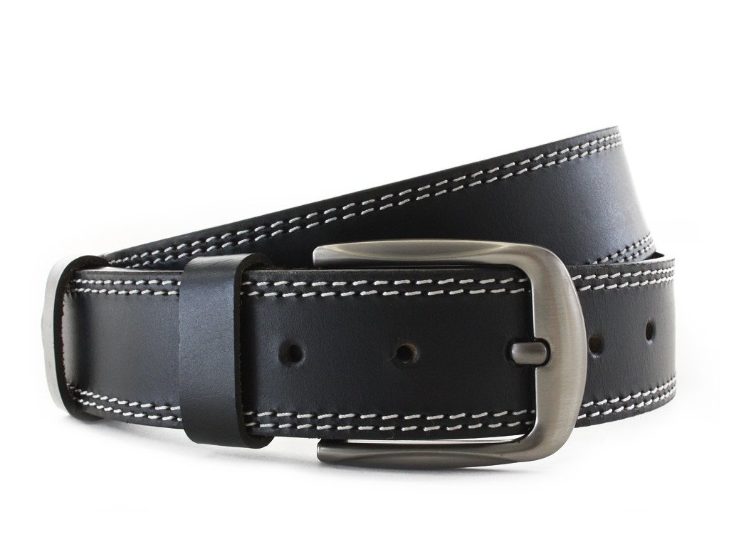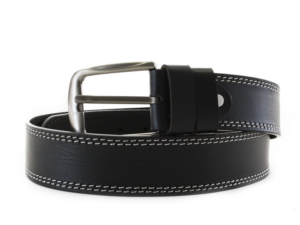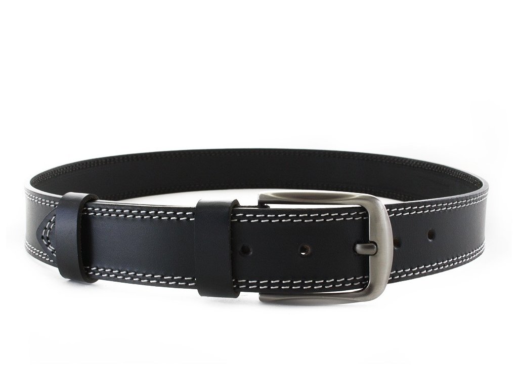 Šedočierny kožený pánsky opasok s dvojitým šitím 913-5004-2-60/20-9010-40