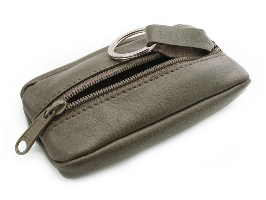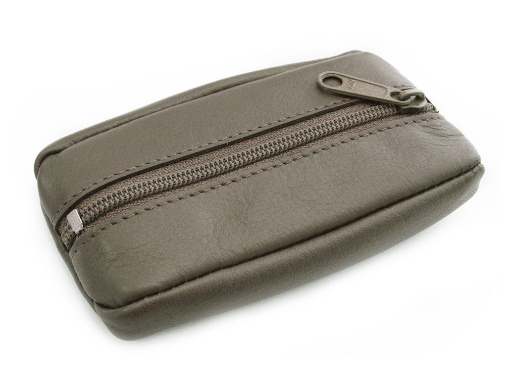 Šedohnedá kožená kľúčenka so zipsovým vreckom 619-2418-26