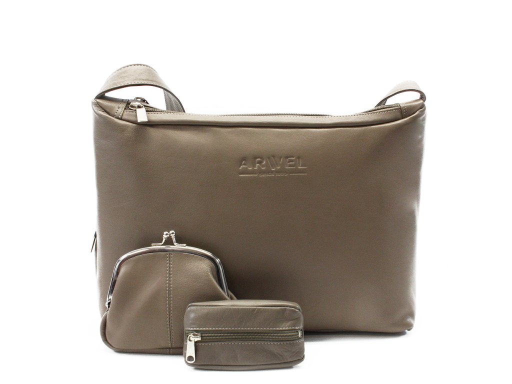 Šedohnedá sada dámskej kabelky, peňaženky a kľúčenky 412-4003-1745-2418-26