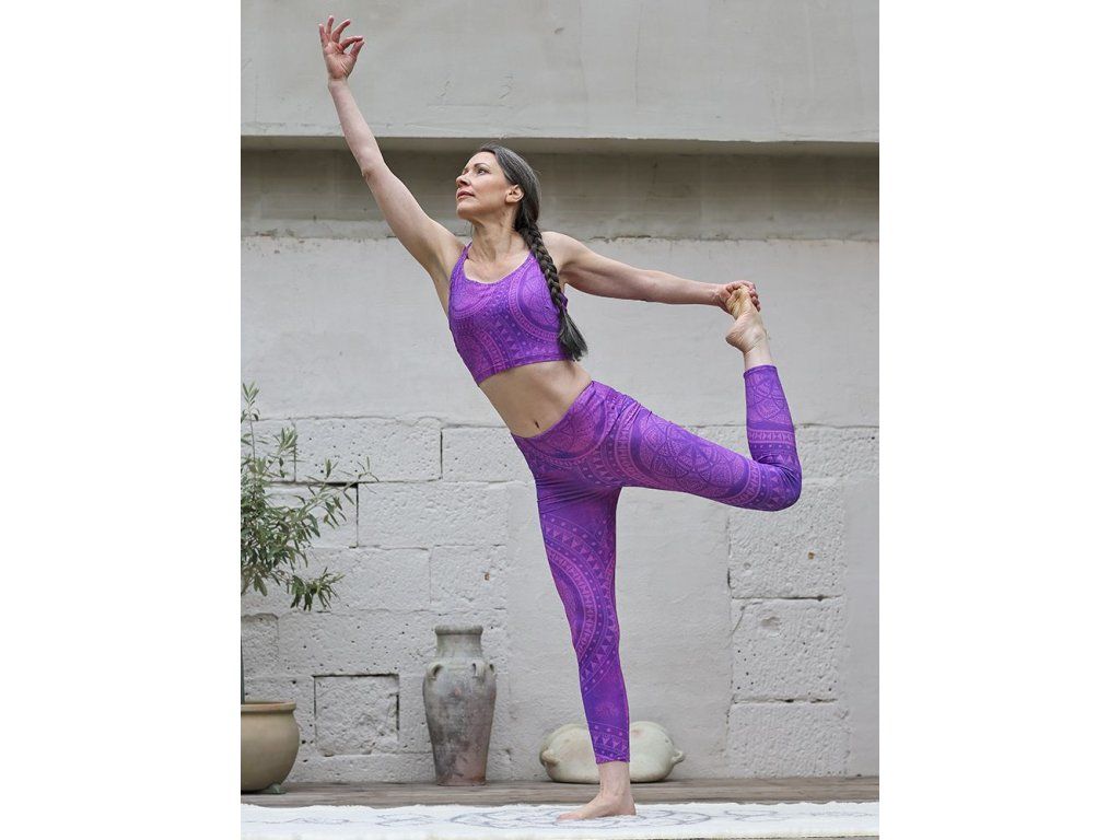 Spirit of OM súprava legíny 7/8 a podprsenka z bio bavlny Mabu Bhati Spirit - fialová Veľkosť: L