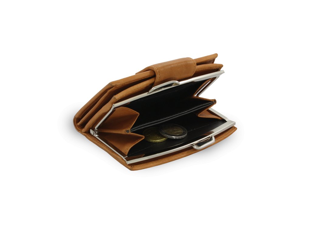 Svetlo hnedá dámska kožená rámová peňaženka so zápinkou 511-4357-05
