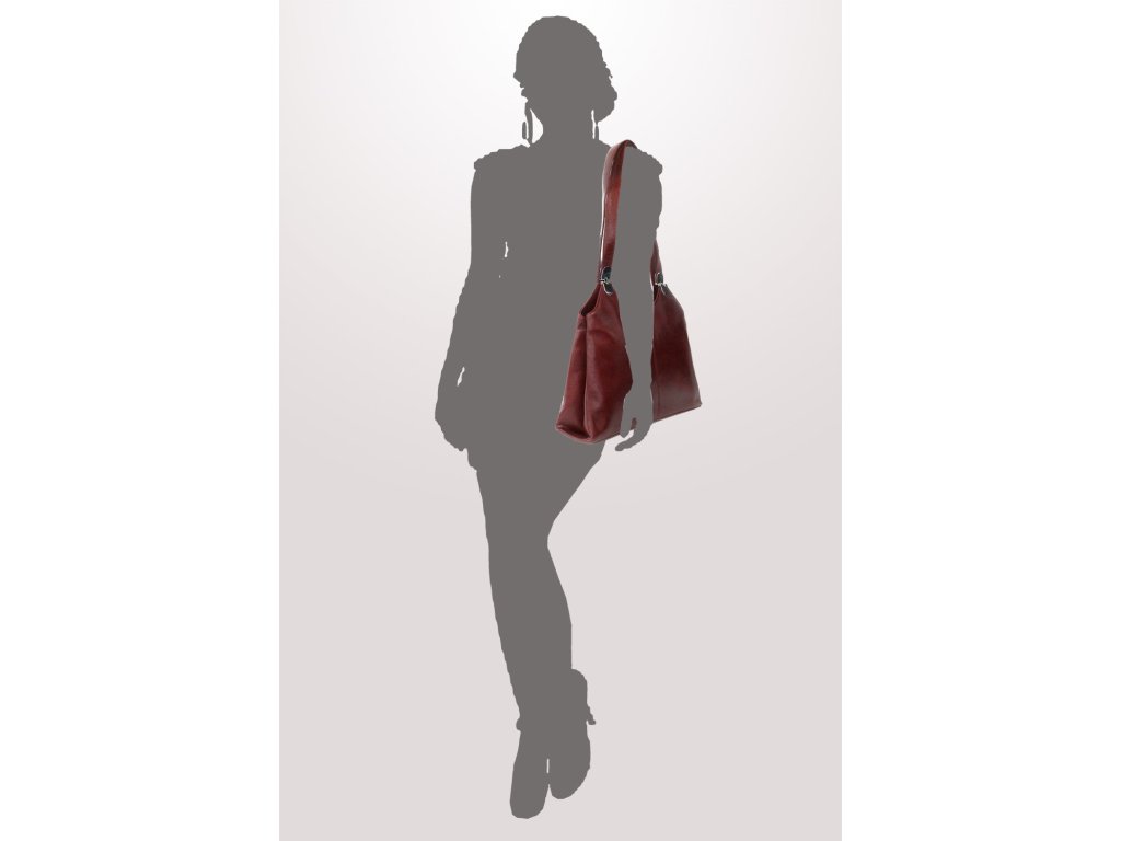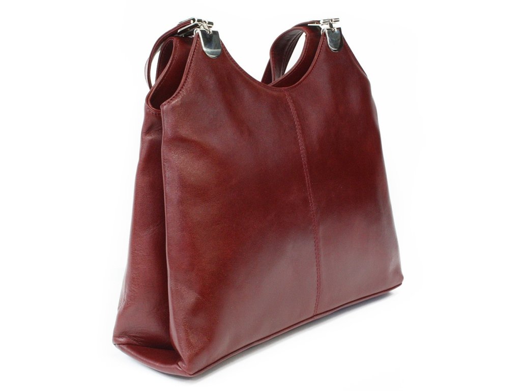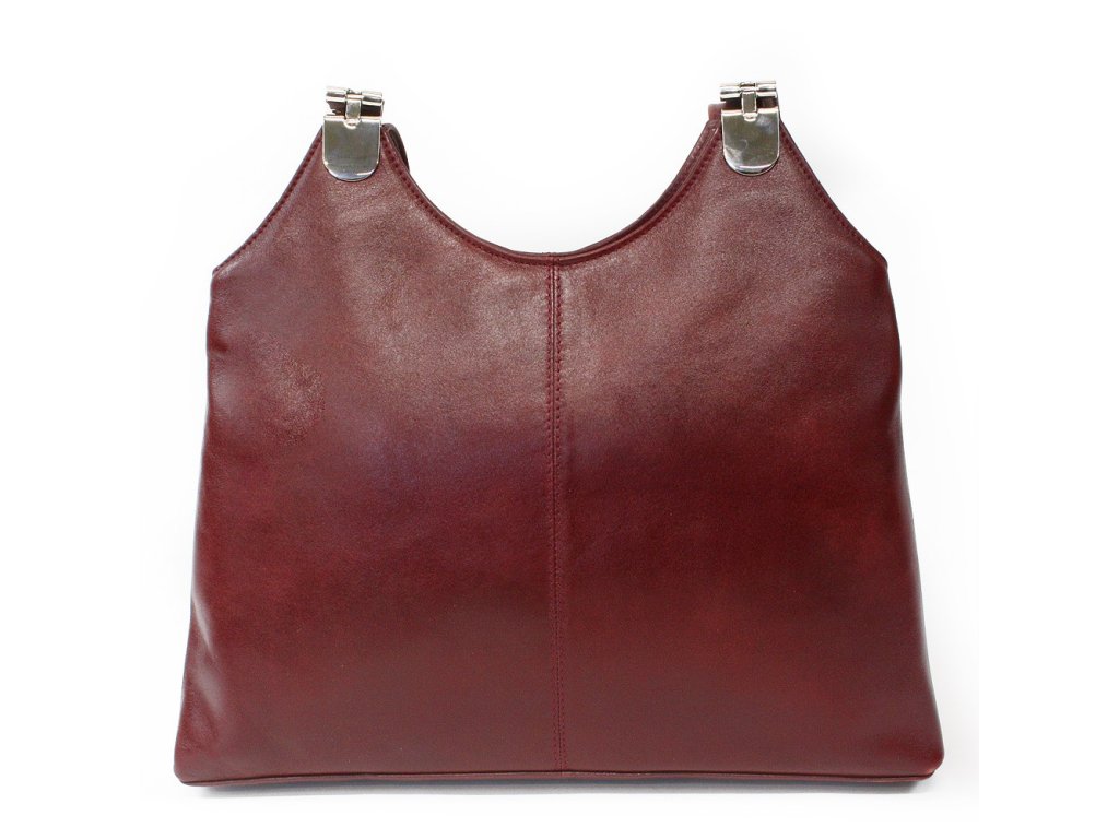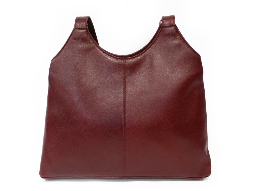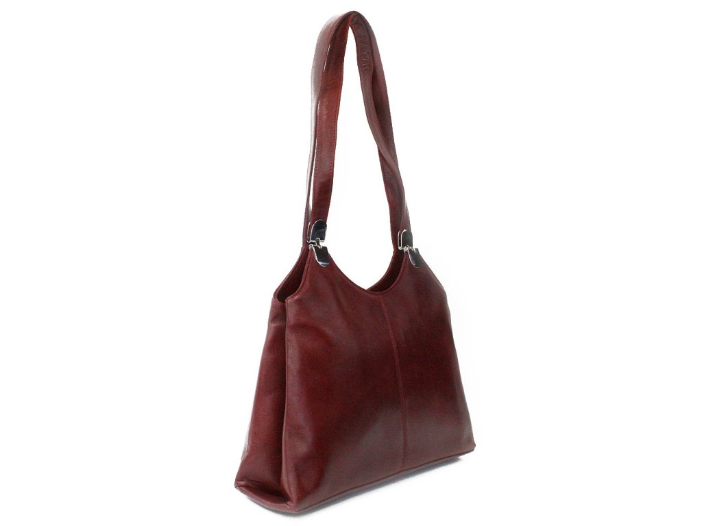Tmavo červená kožená zipsová kabelka s dvoma popruhmi 212-8013-31