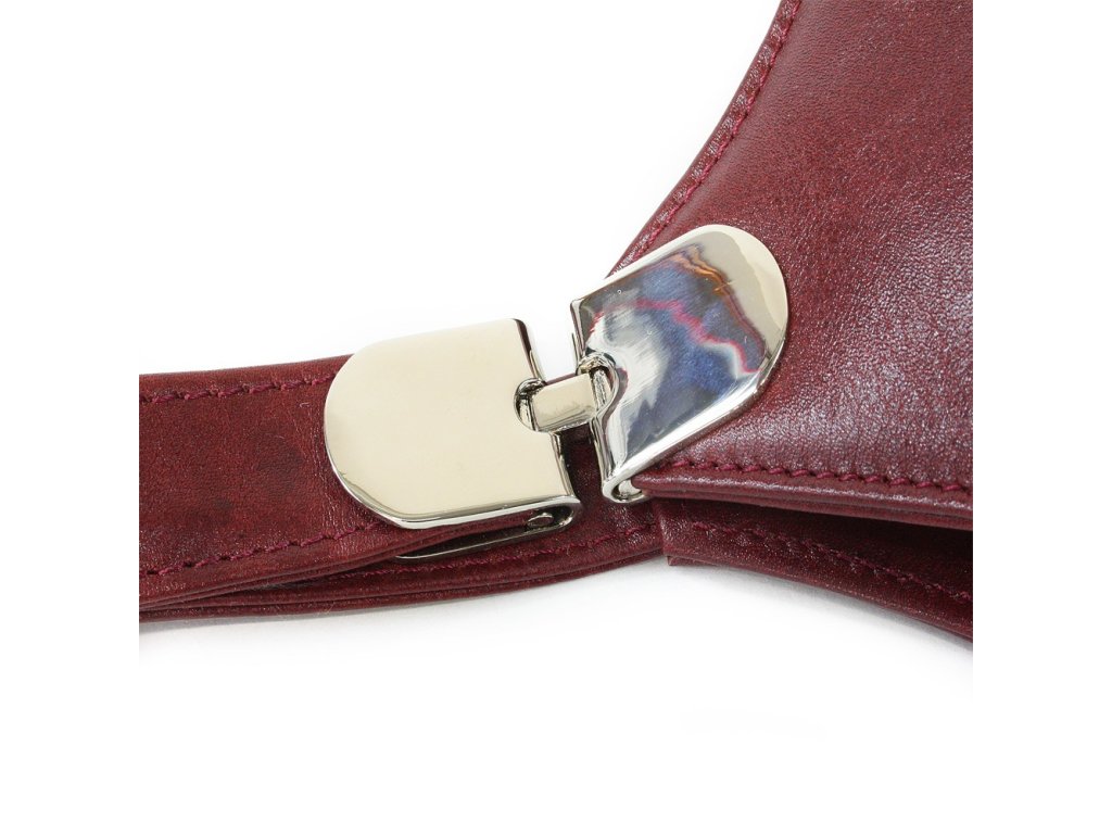 Prvé veľké zipsové vrecko obsahuje zipsové vrecko, druhé vrecko obsahuje vrecko na mobil. Dĺžka popruhu 68 cm. Ako darček malé zrkadlo v koženom obale a skladacia textilná nákupná taška.