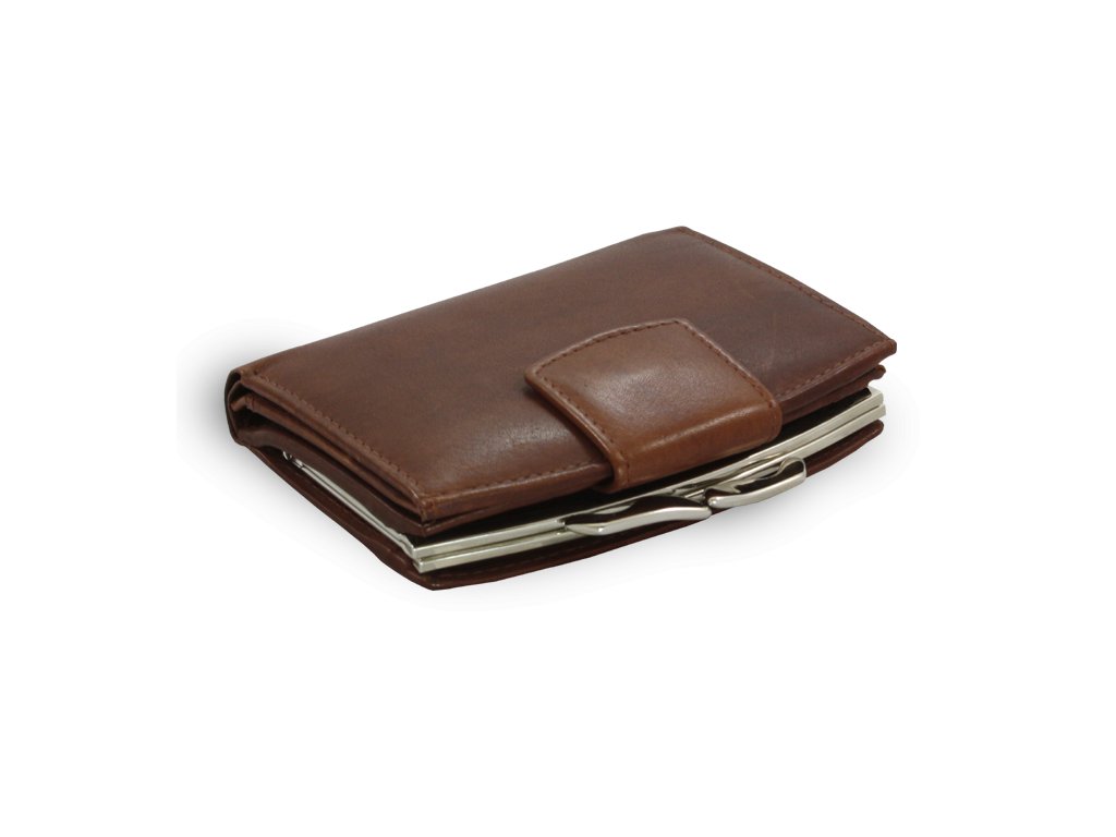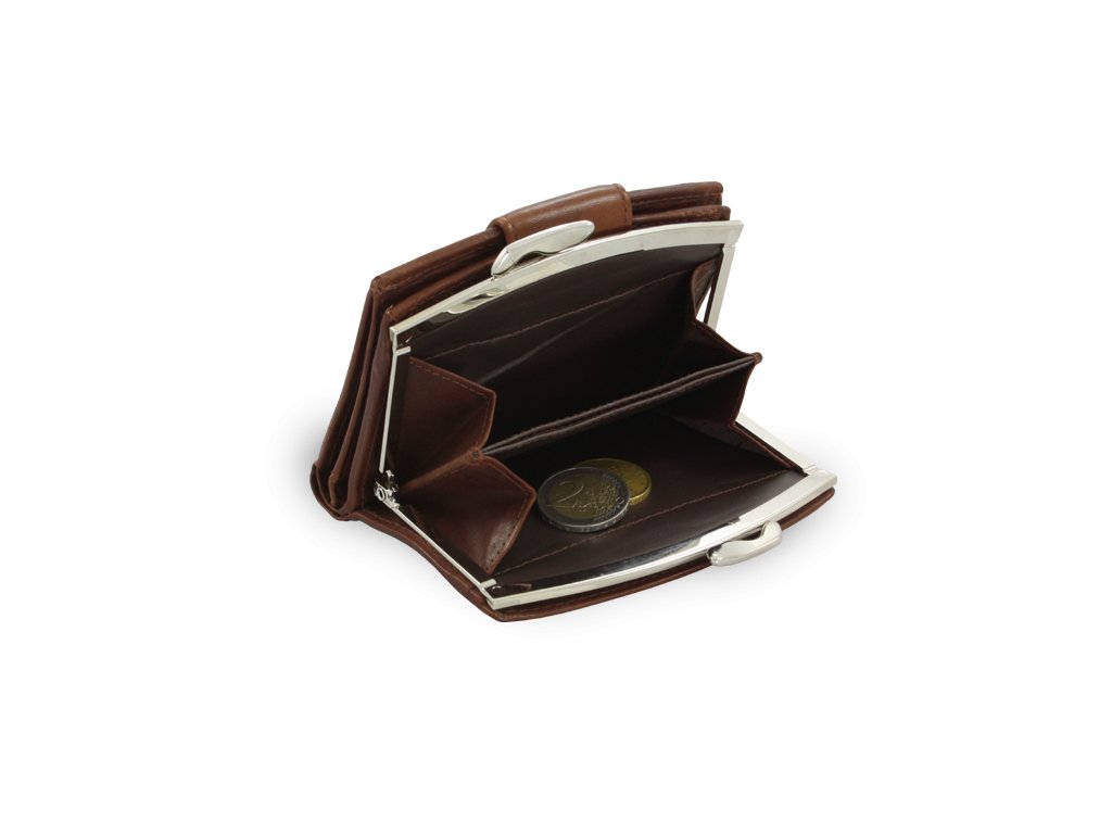 Tmavo hnedá dámska kožená rámová peňaženka so zápinkou 511-4357-47