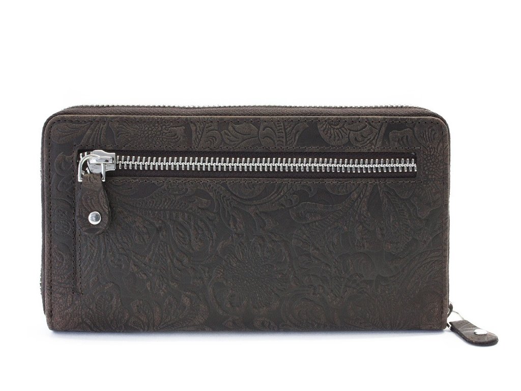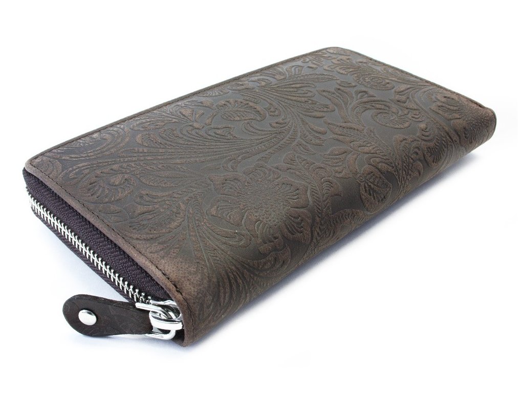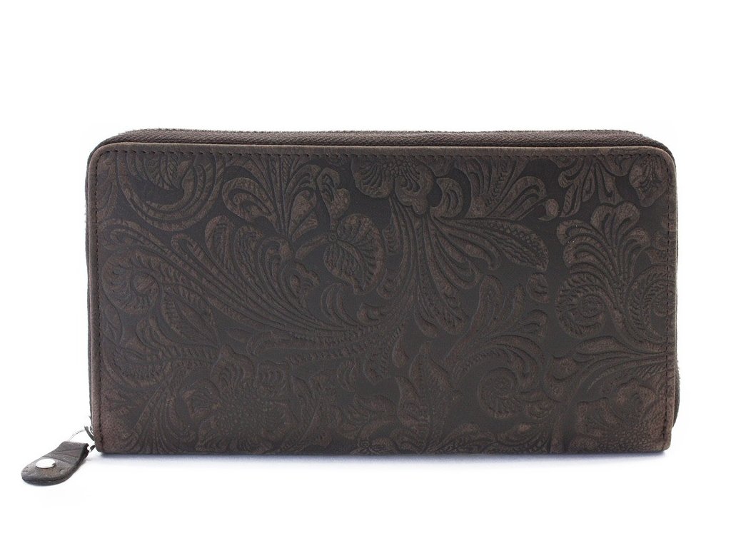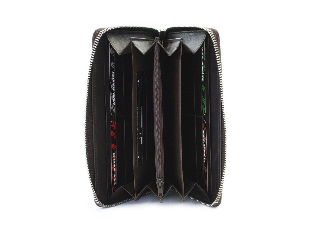 Tmavo hnedá dámska kožená zipsová peňaženka so vzorom 511-2265-47