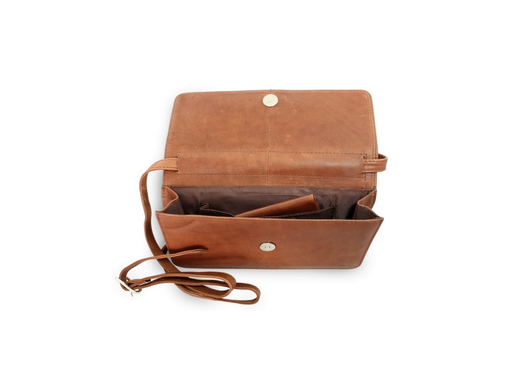 Tmavo hnedá kožená listová kabelka s popruhom 214-7071-47