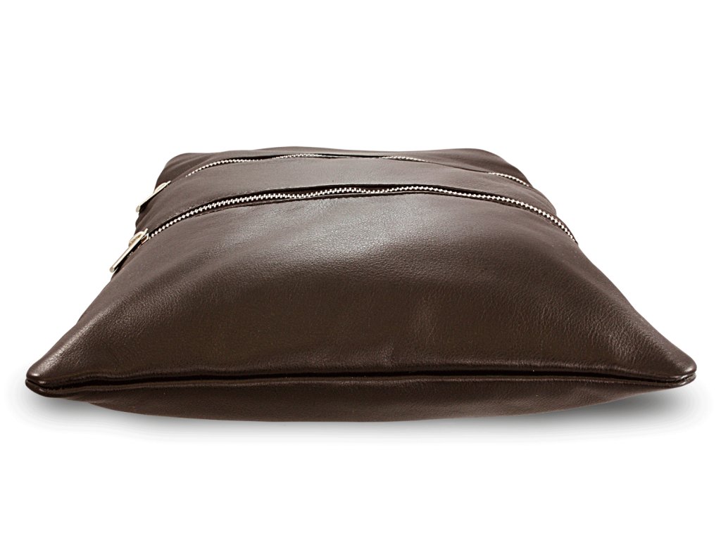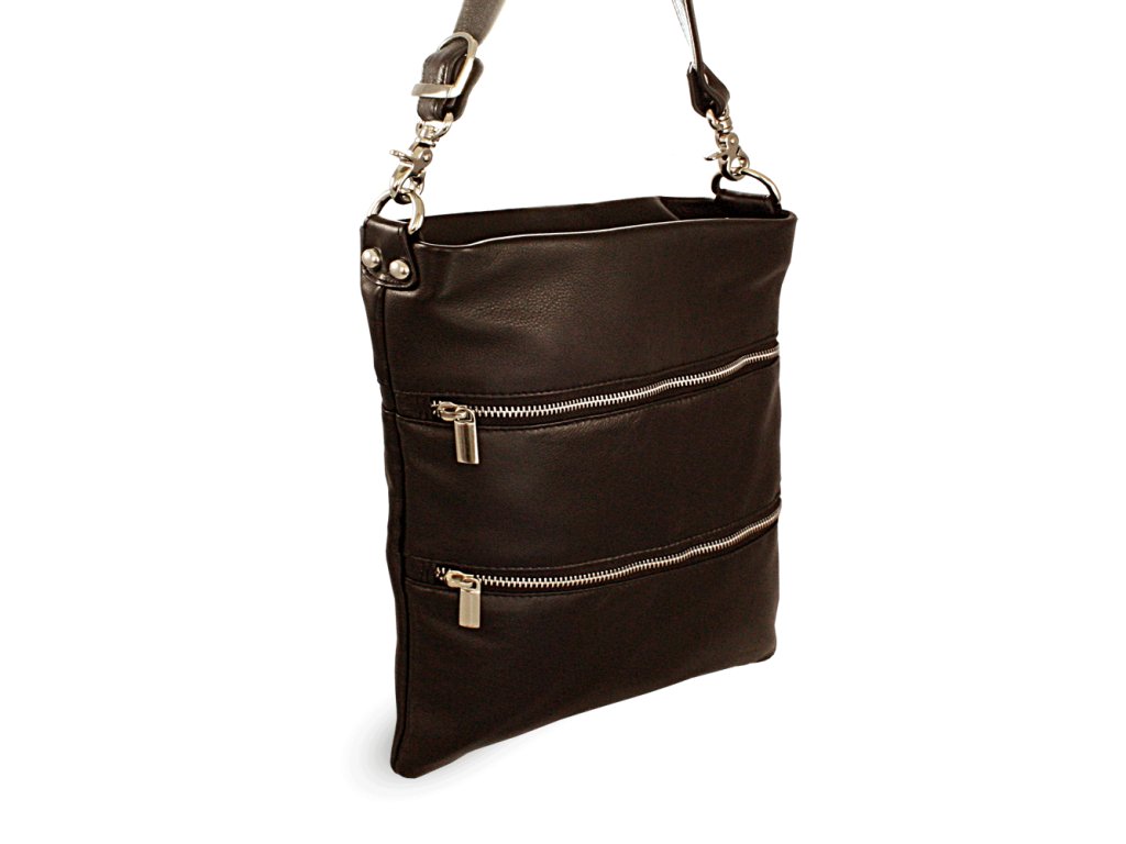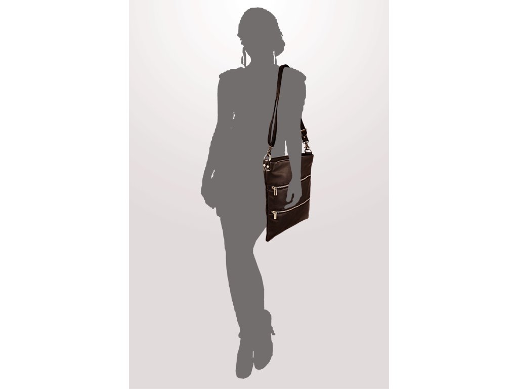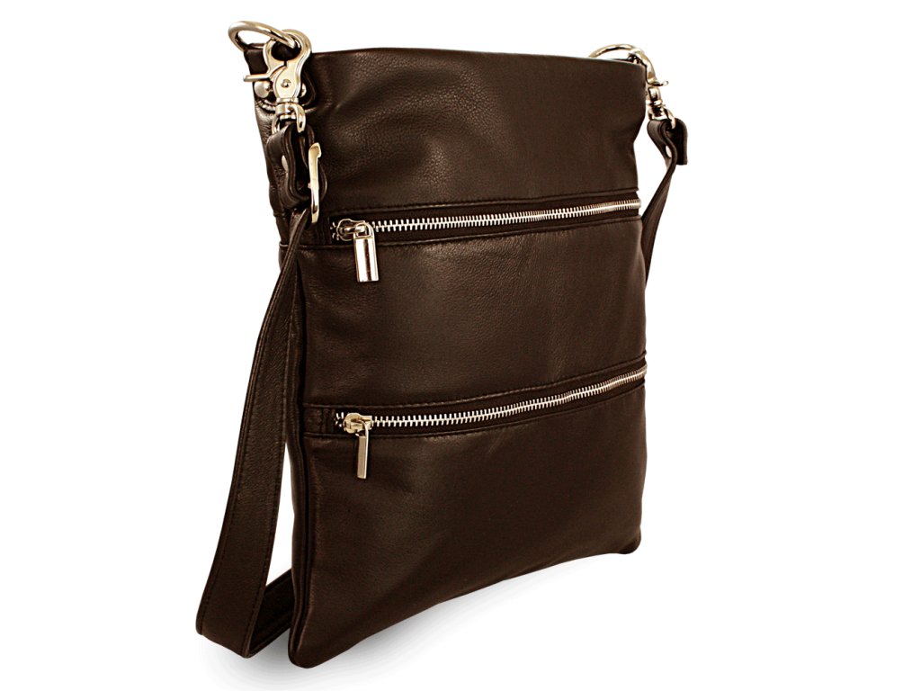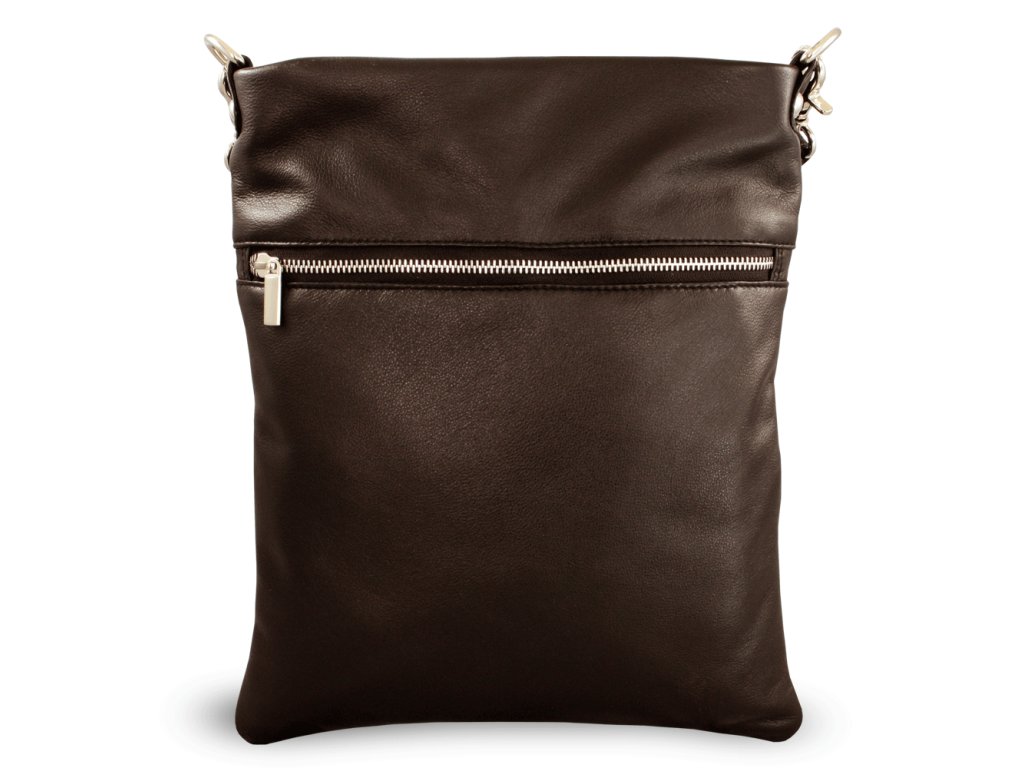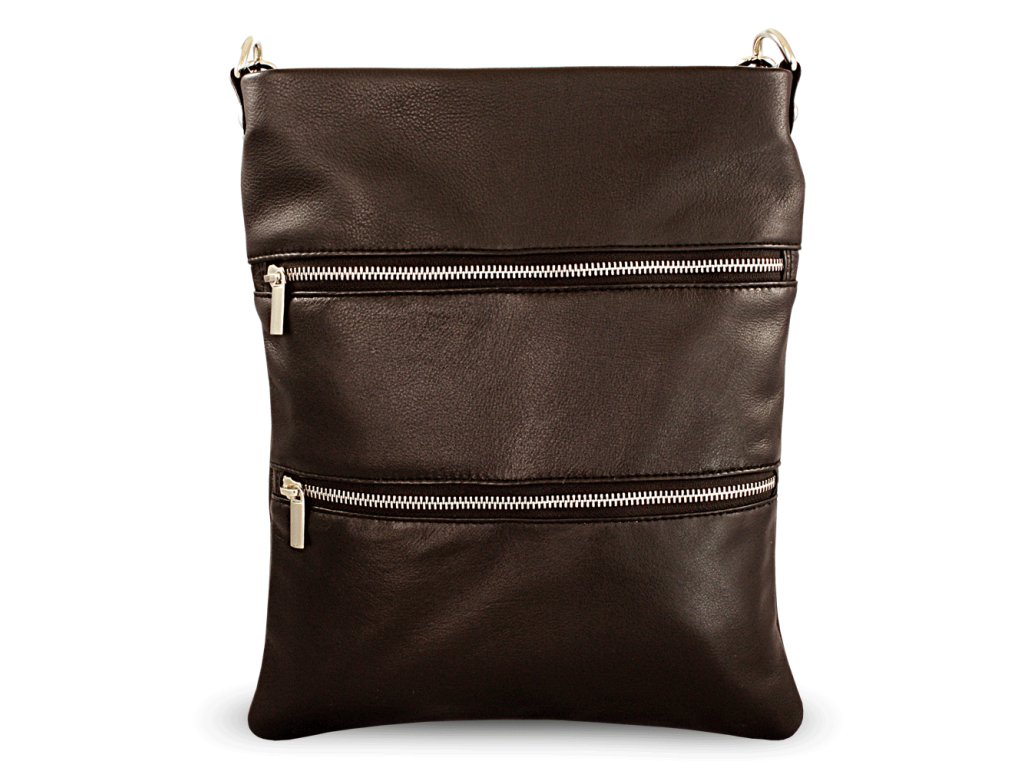 Tmavo hnedá kožená zipsová kabelka s popruhom 212-3066-47