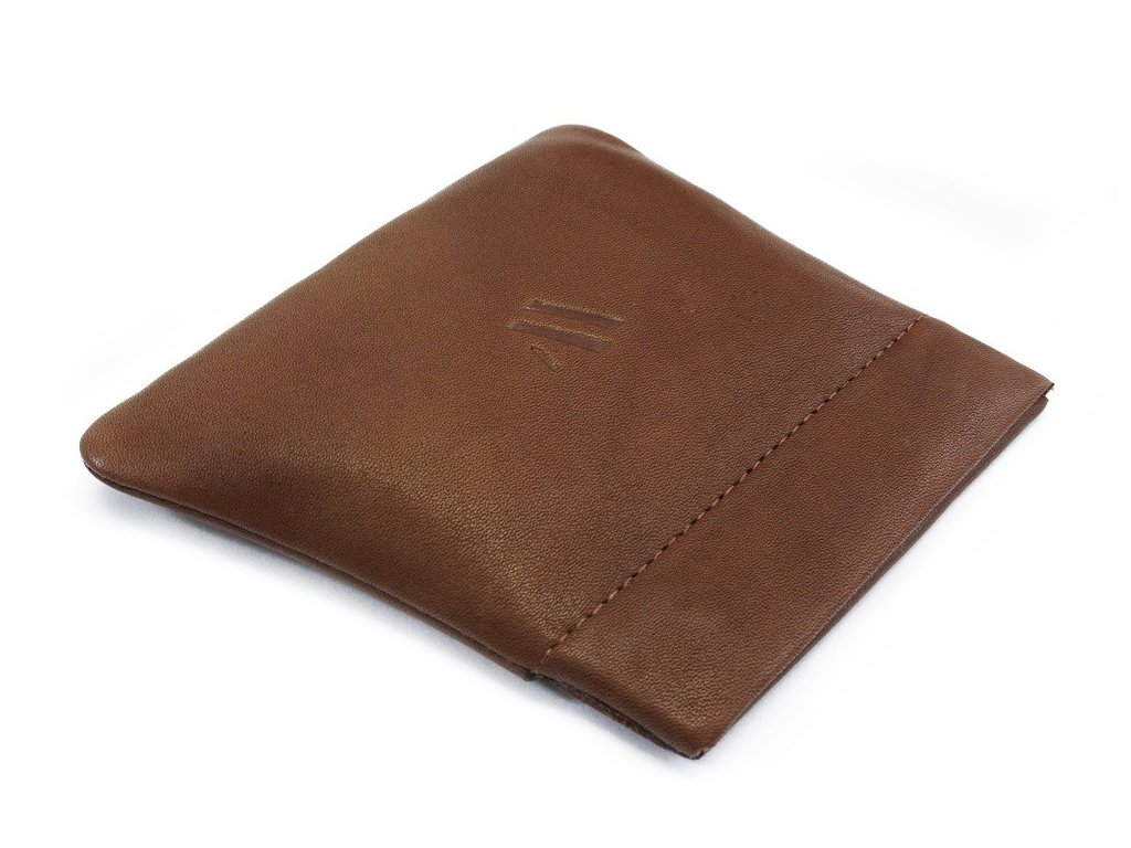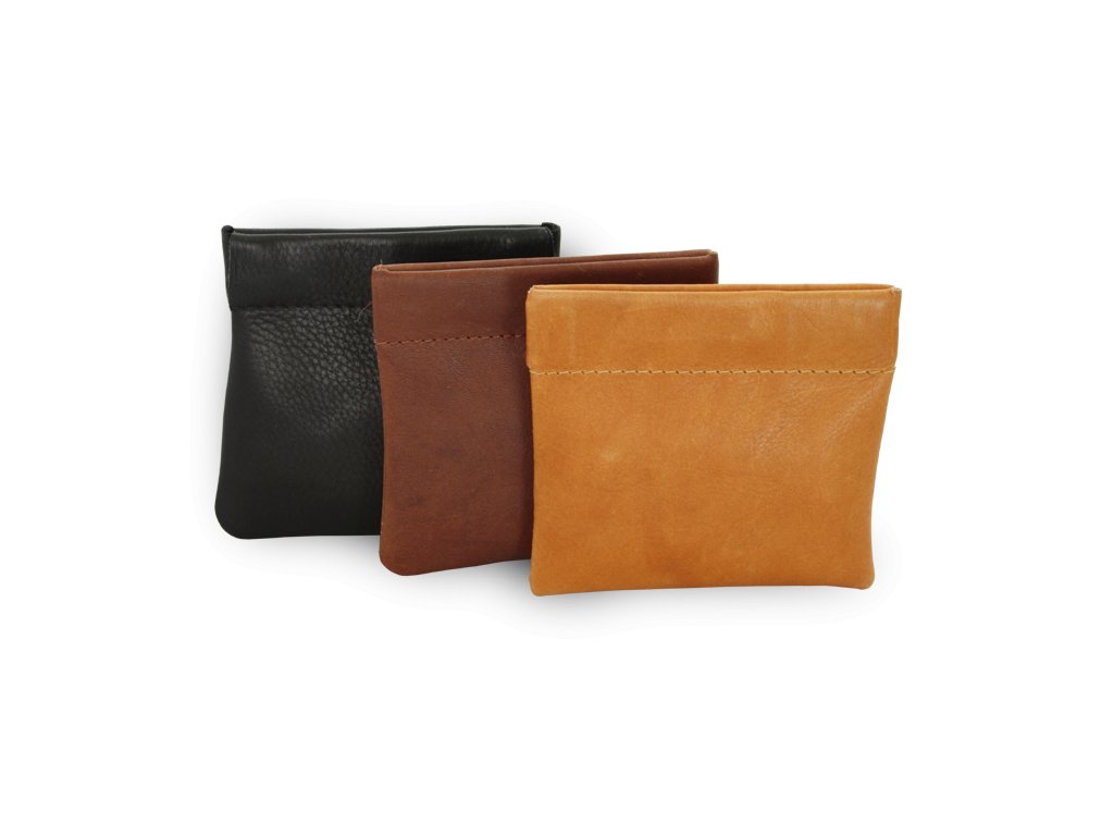 Kožené vrecko na mince s pružinovým uzatváraním štrbiny.
