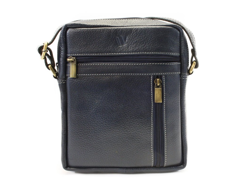 Tmavo modrý pánsky kožený zipsový crossbag 215-1218-97