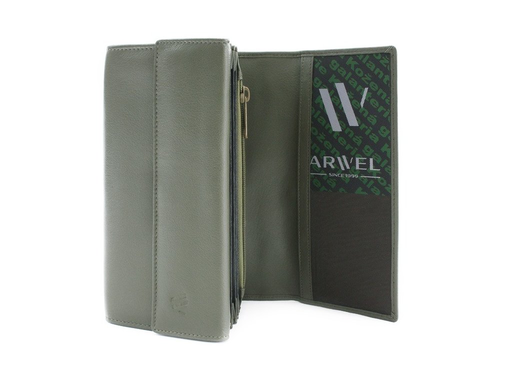 Tmavozelená kožená čašnícka peňaženka s klopovým vreckom na mince 515-2401A-57