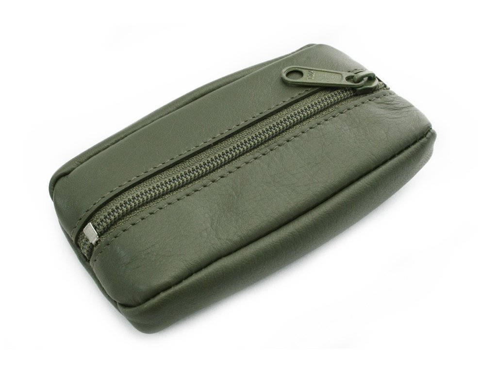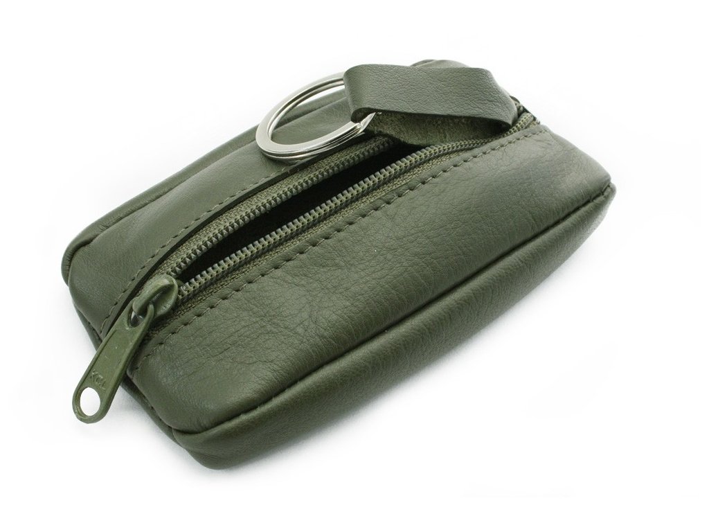 Tmavozelená kožená kľúčenka so zipsovým vreckom 619-2418-57