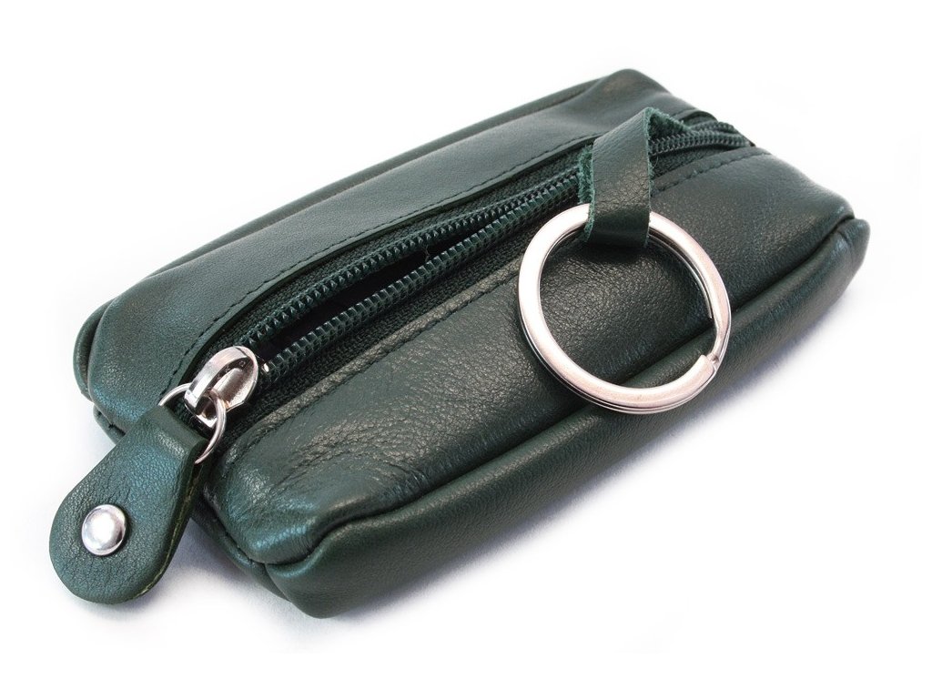 Tmavozelená kožená kľúčenka so zipsovým vreckom 619-2418-58