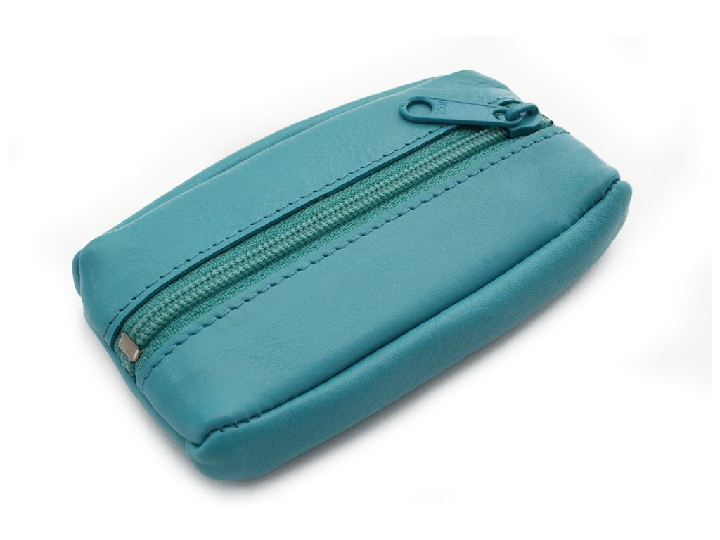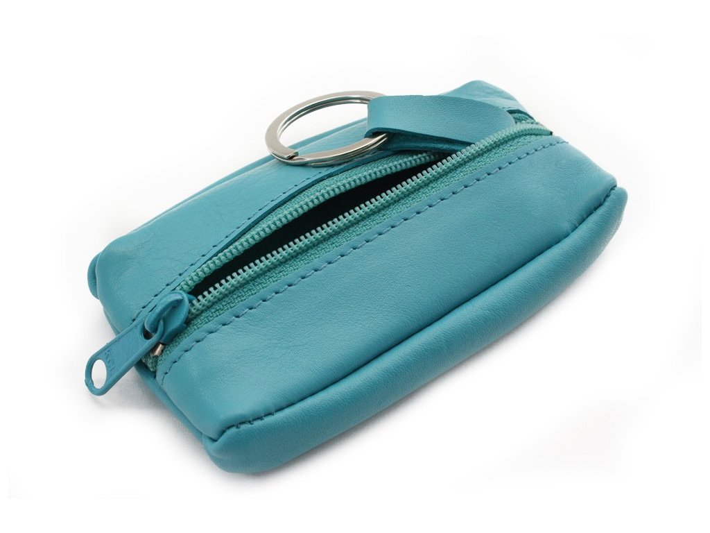 Tyrkysovo modrá kožená kľúčenka so zipsovým vreckom 619-2418-53