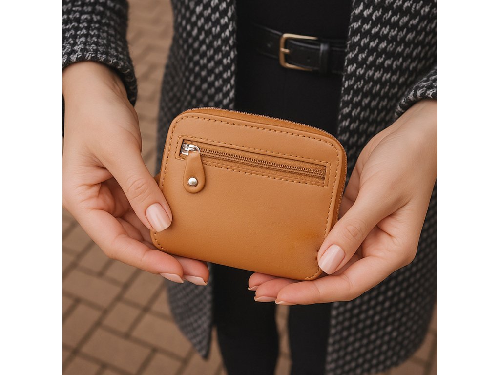 Väčšia béžová kožená dvojzipsová kľúčenka 619-8104-82