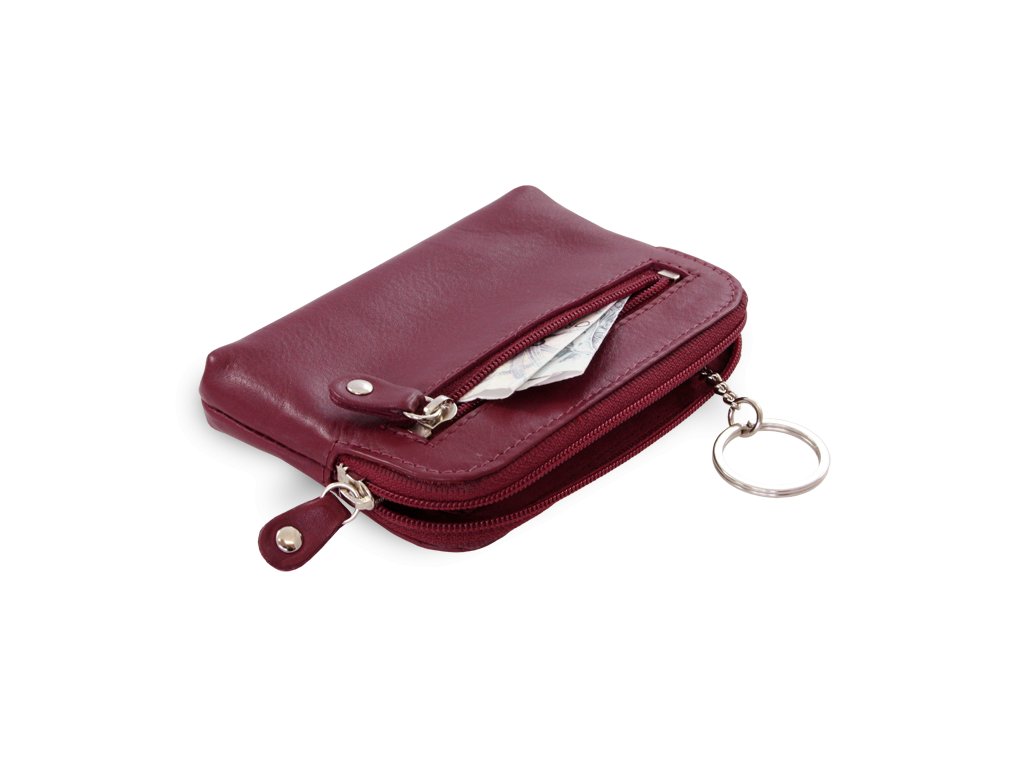 Väčšia burgundy kožená dvojzipsová kľúčenka 619-8104-34