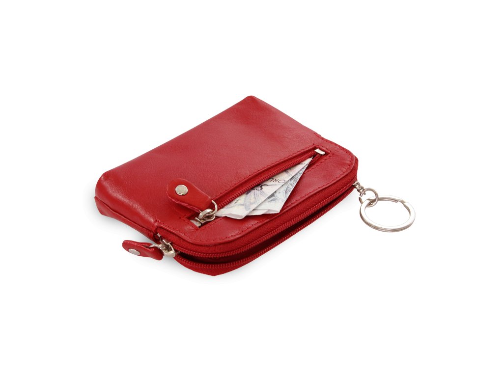 Väčšia červená kožená dvojzipsová kľúčenka 619-8104-31