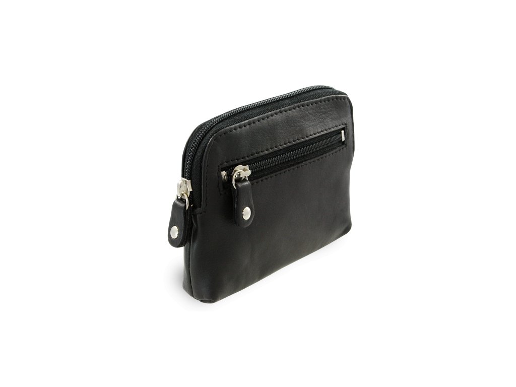 Väčšia čierna kožená dvojzipsová kľúčenka 619-8104-60