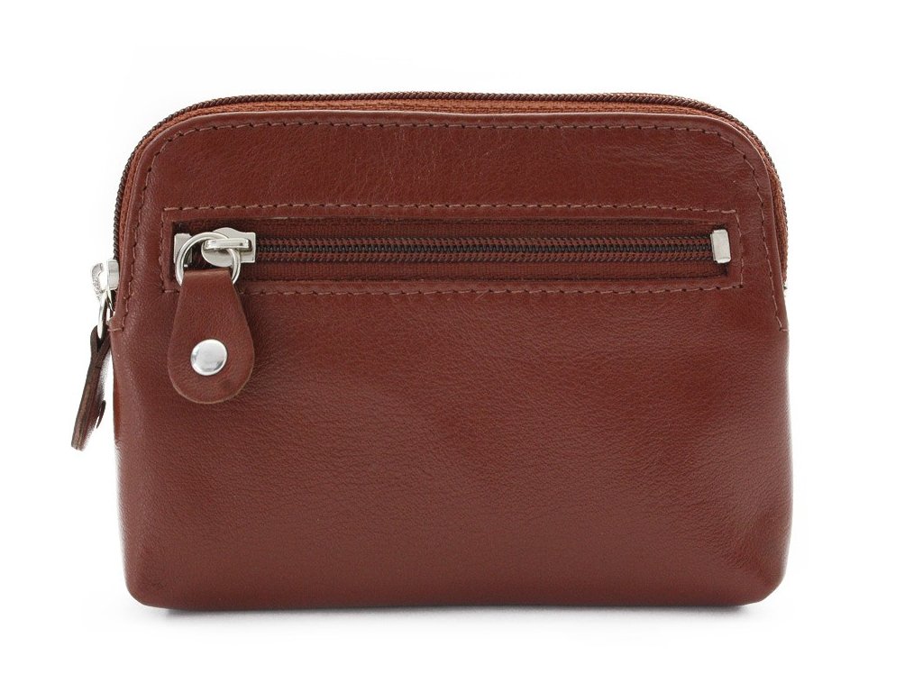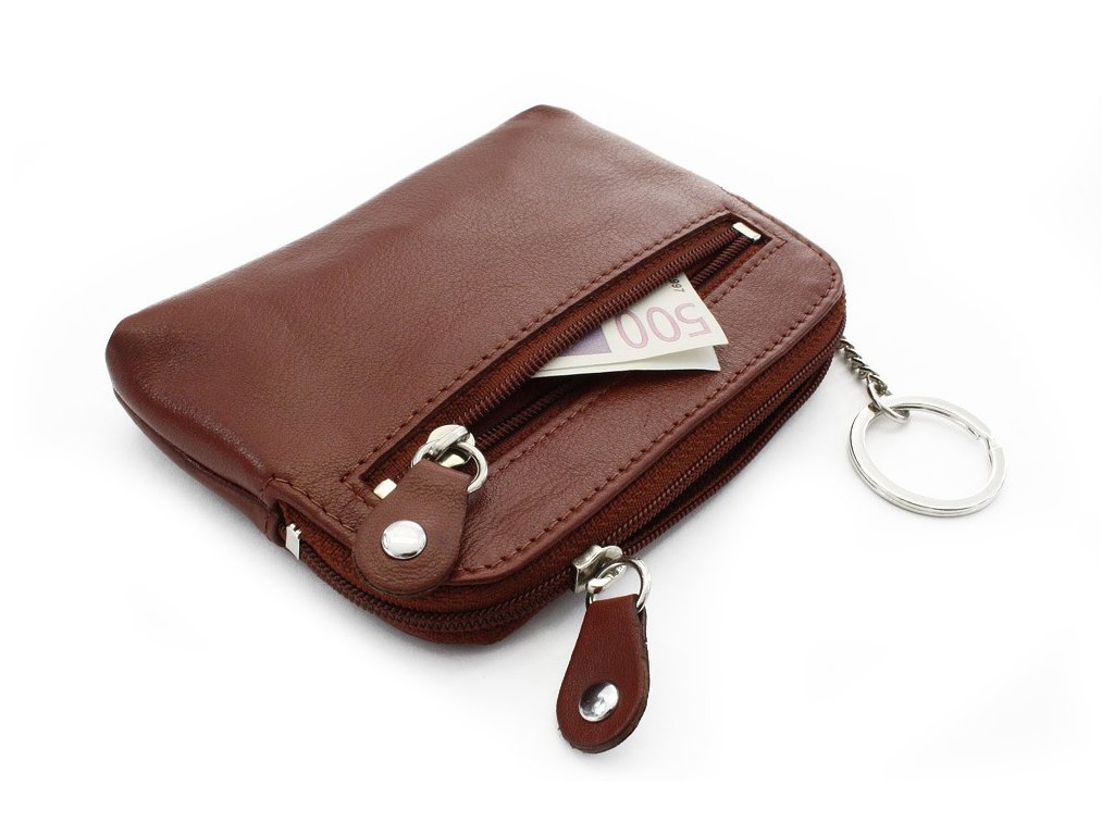 Väčšia hnedá kožená dvojzipsová kľúčenka 619-8104-41