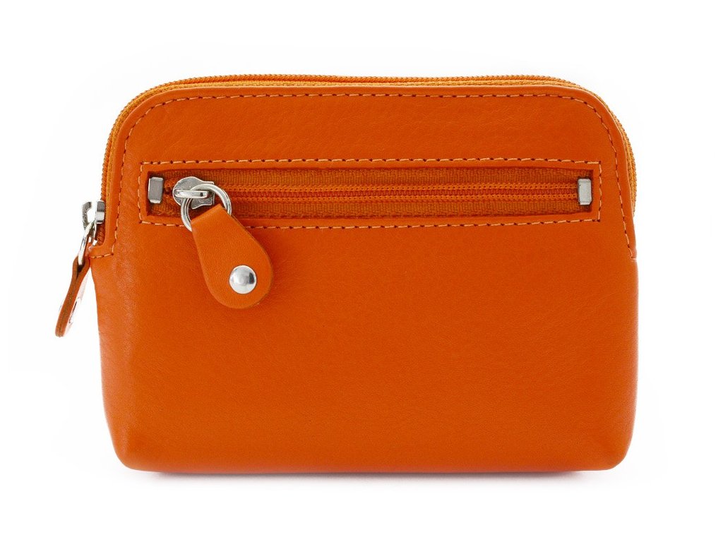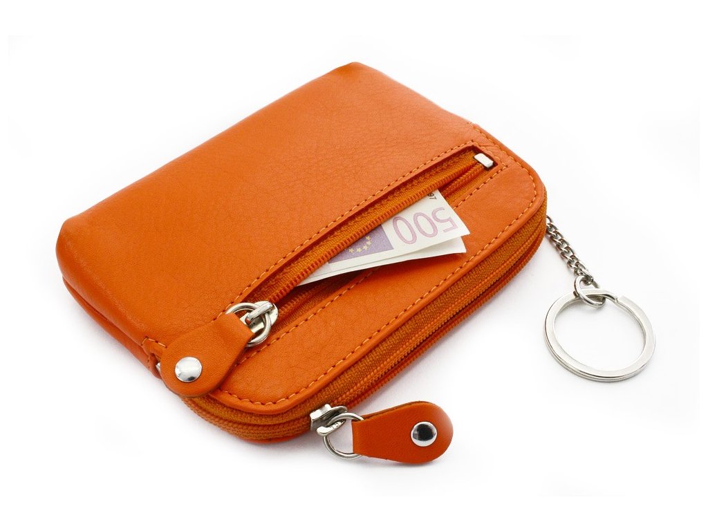 Väčšia oranžová kožená dvojzipsová kľúčenka 619-8104-84