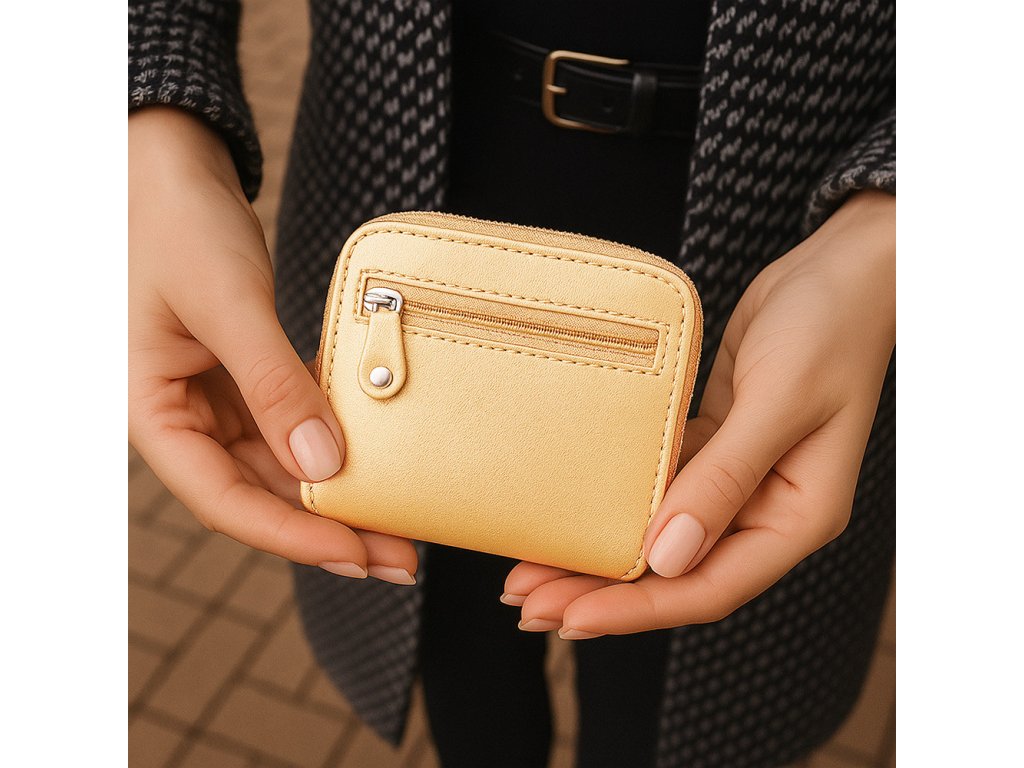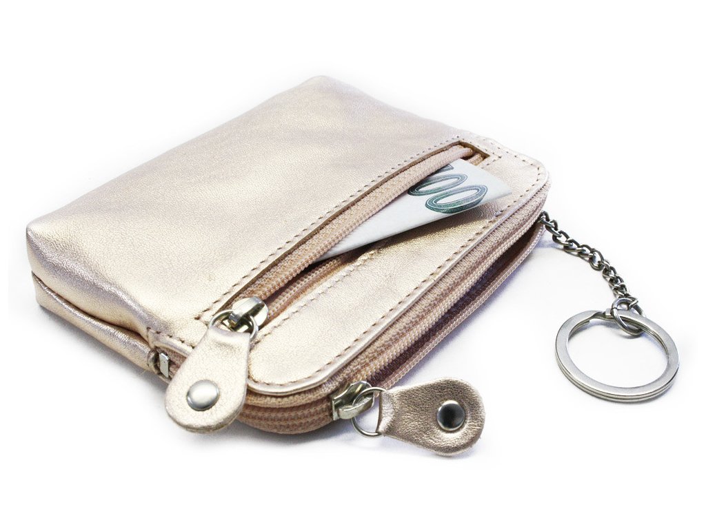 Väčšia zlatá kožená dvojzipsová kľúčenka 619-8104-01