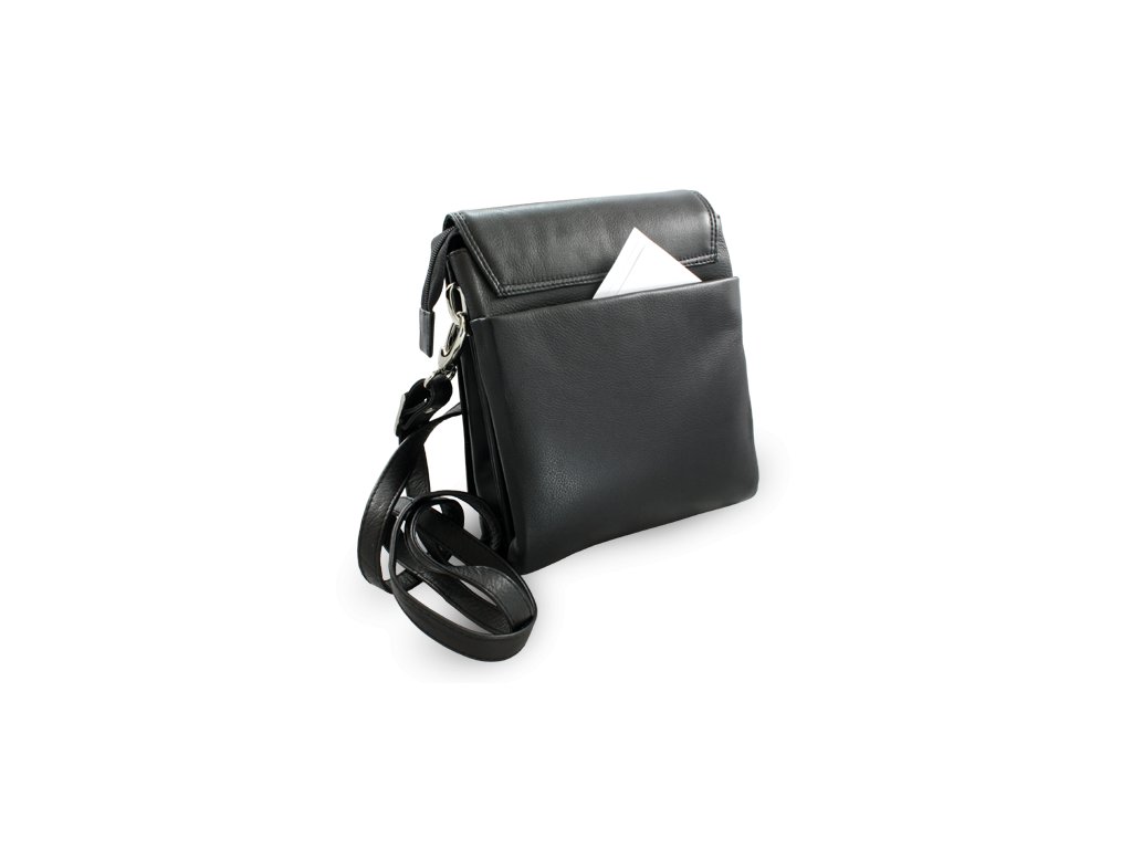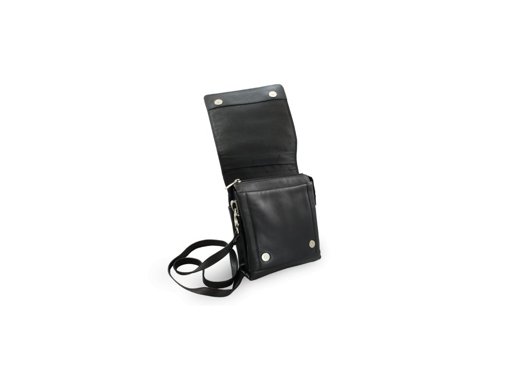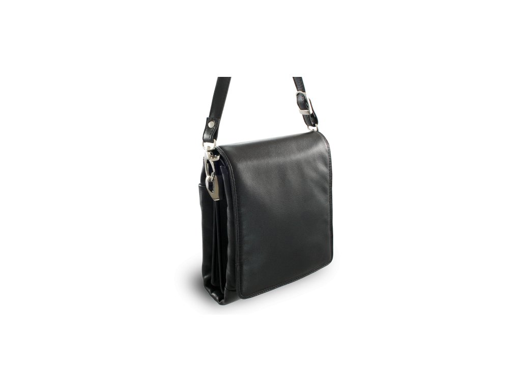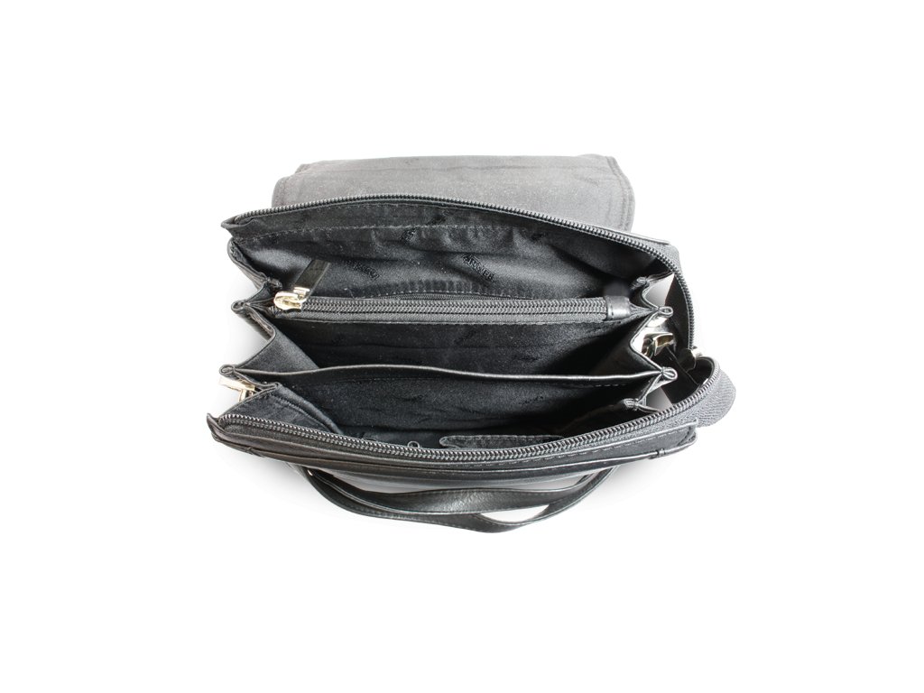 Pod poklopom je zipsový uzáver ukrývajúci 3 väčšie voľné vrecká, jedno väčšie vrecko zipsové a malé zipsové vrecko. Jedno z vreciek obsahuje vrecko na mobil a 2 očká na písacie potreby. Zadné vonkajšie vrecko s magnetickým uzáverom. Nastaviteľný kožený popruh v max. dĺžke 140 cm.