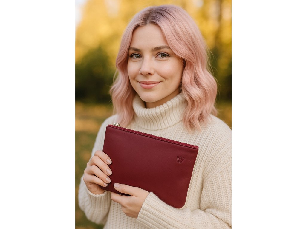 Vínovo červená kožená kozmetická etue 611-0024-34