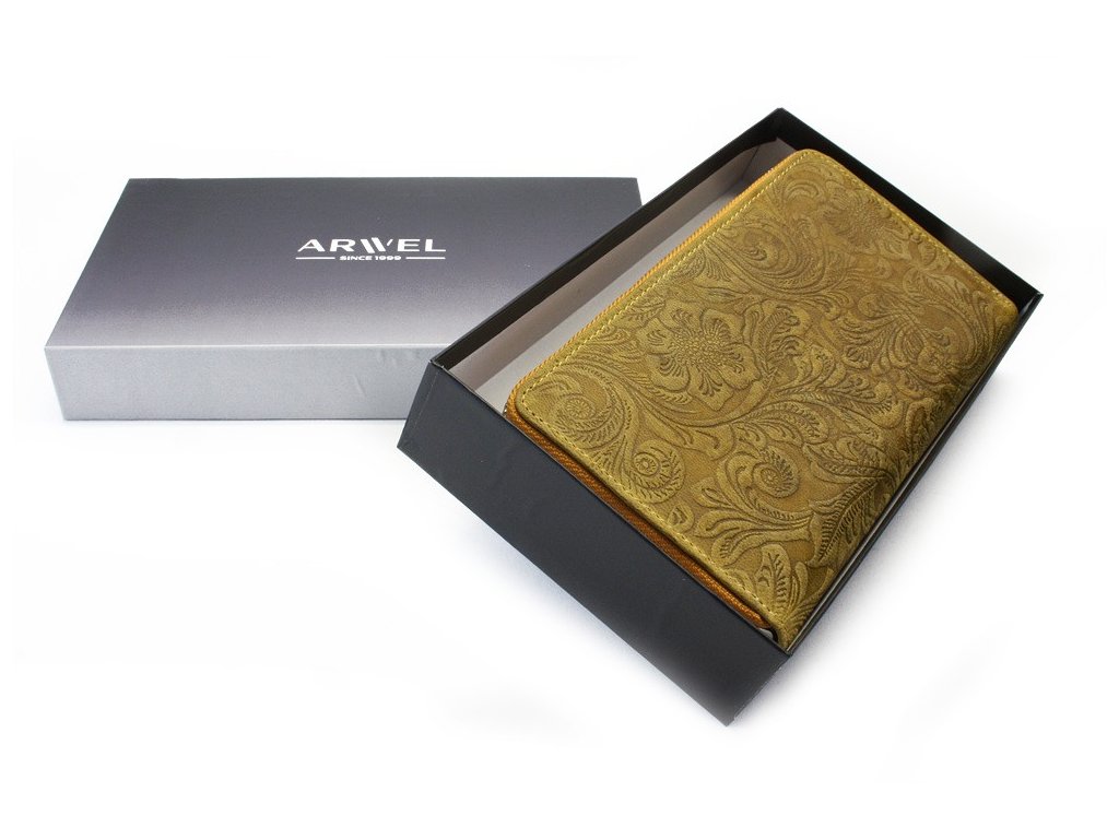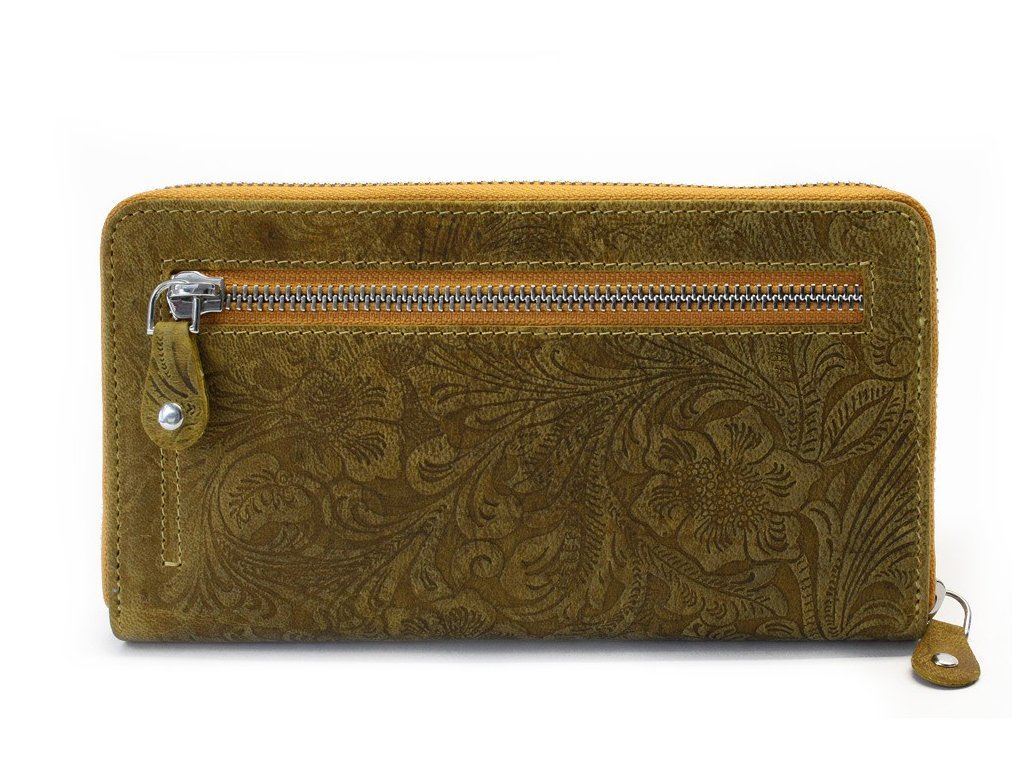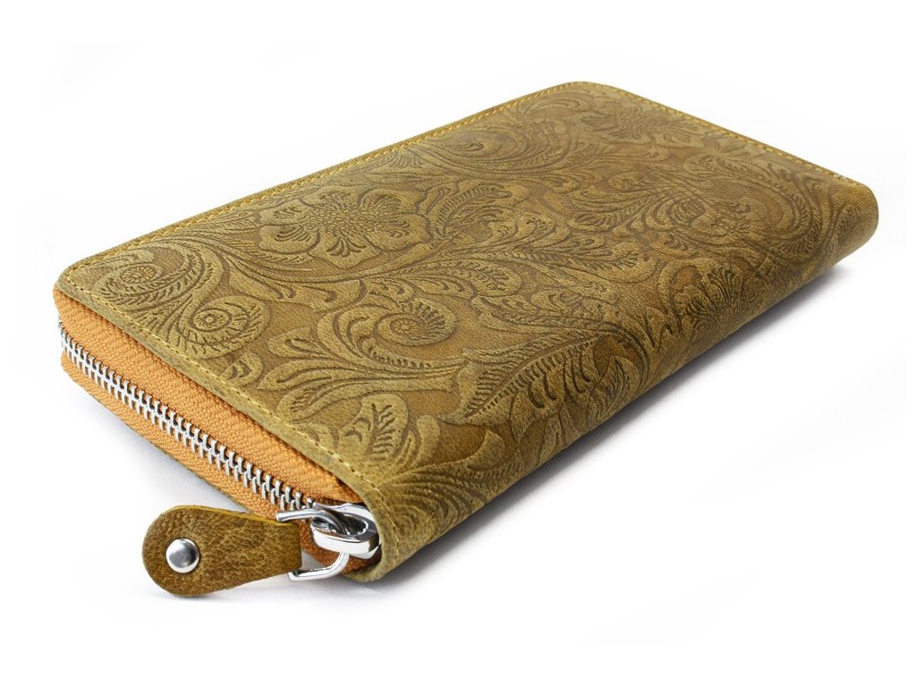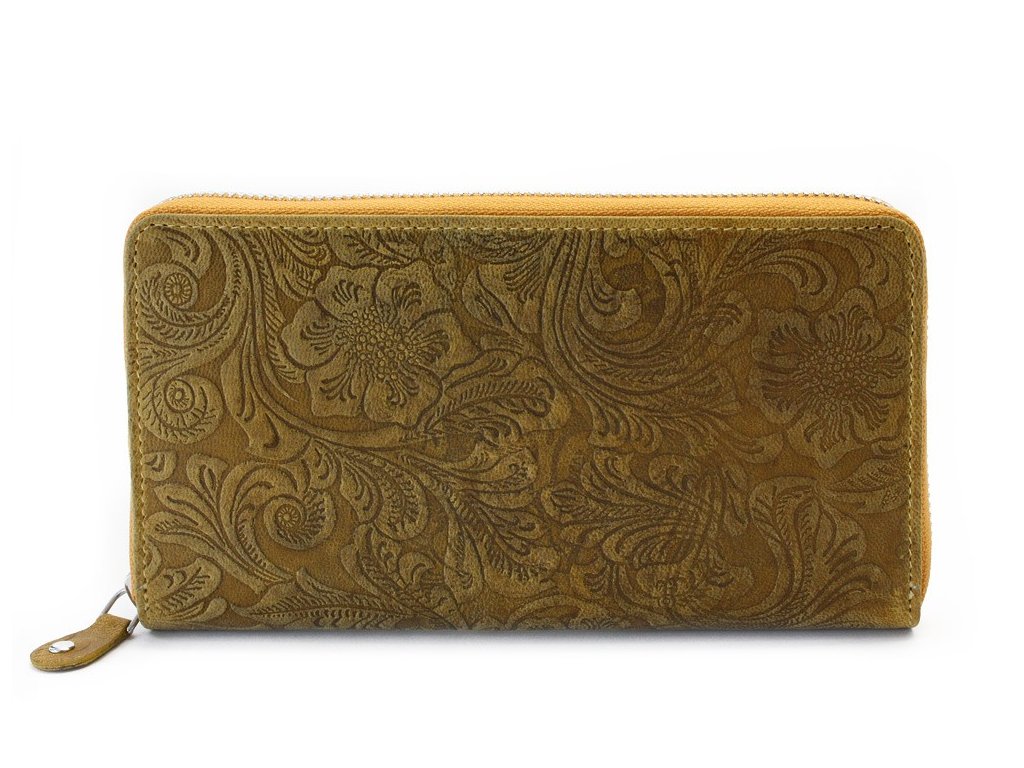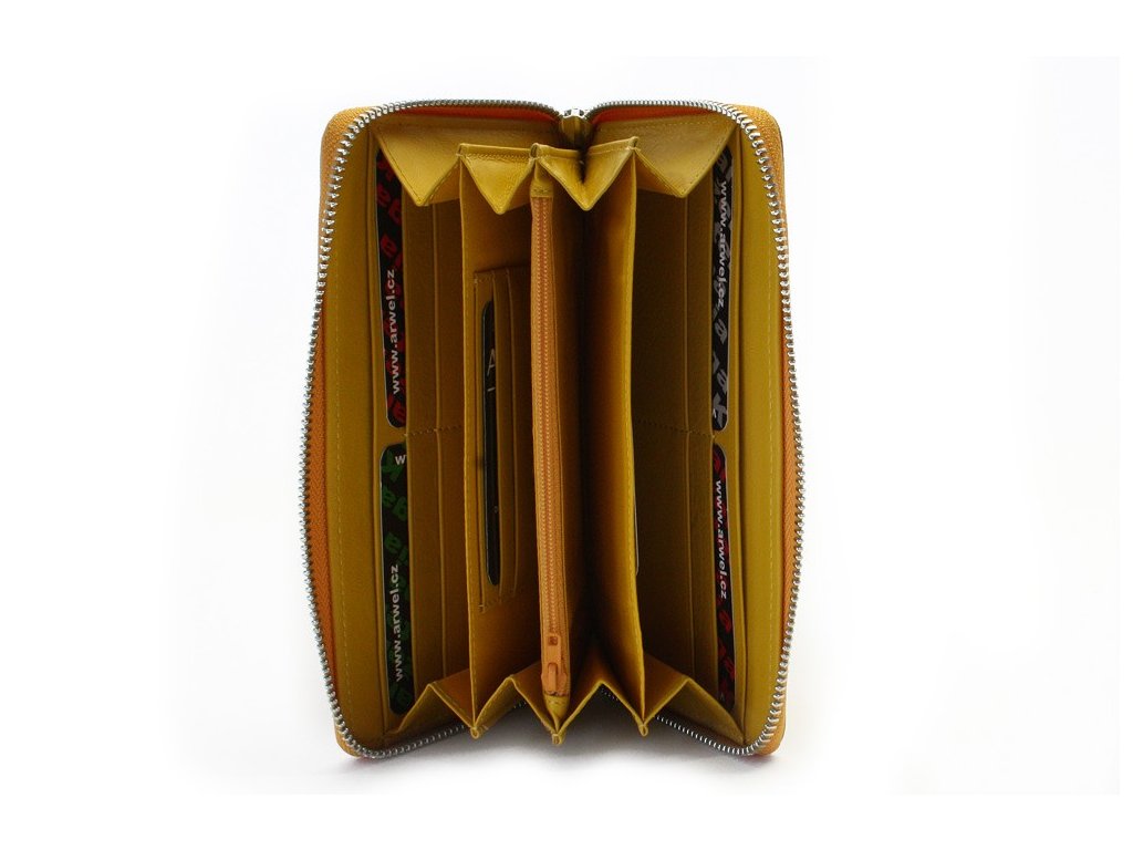 Žltá dámska kožená zipsová peňaženka so vzorom 511-2265-86