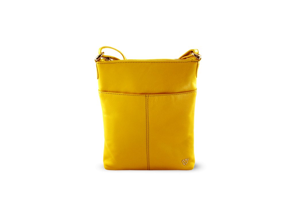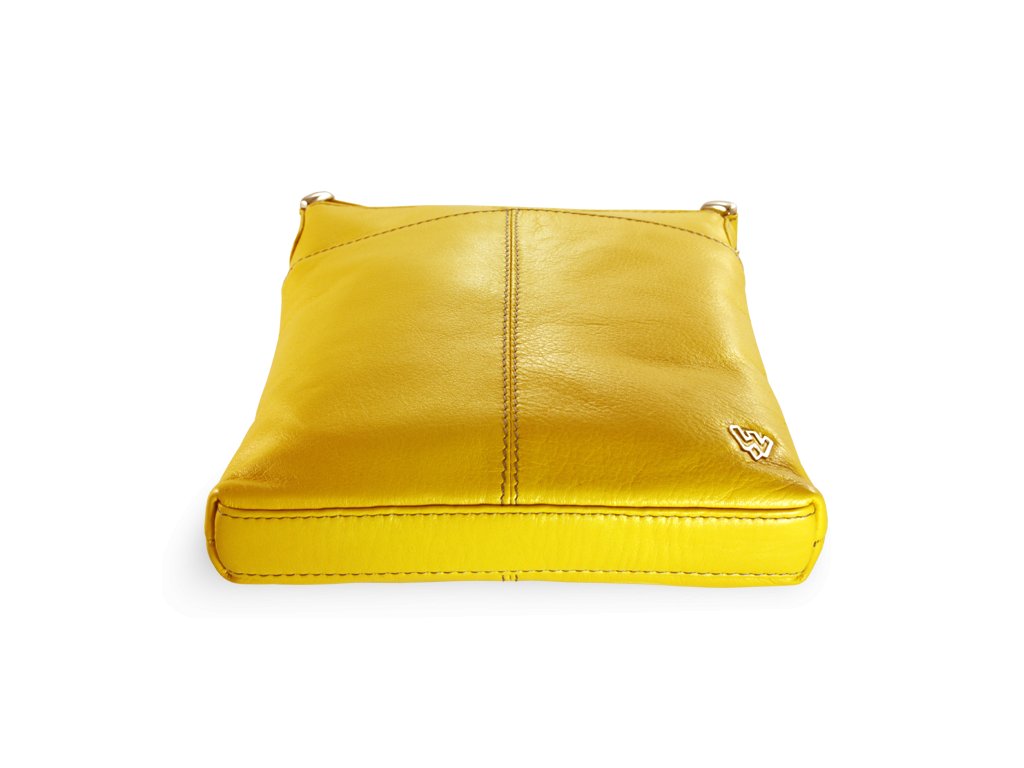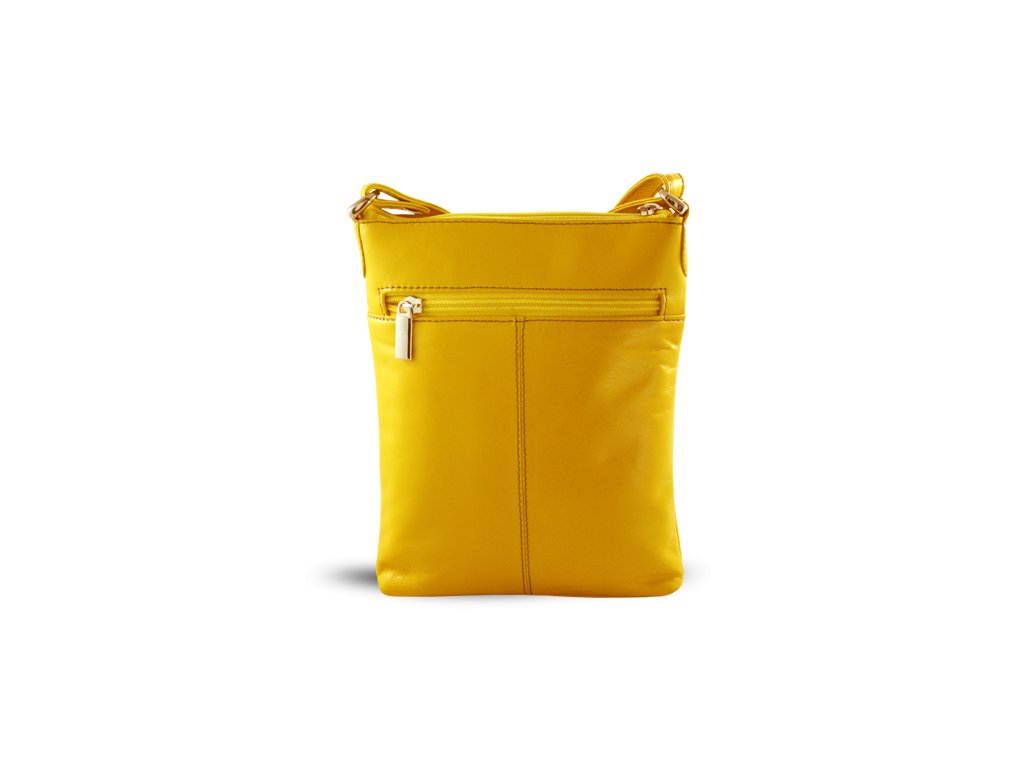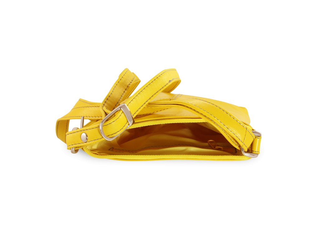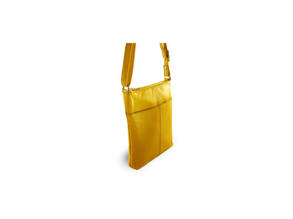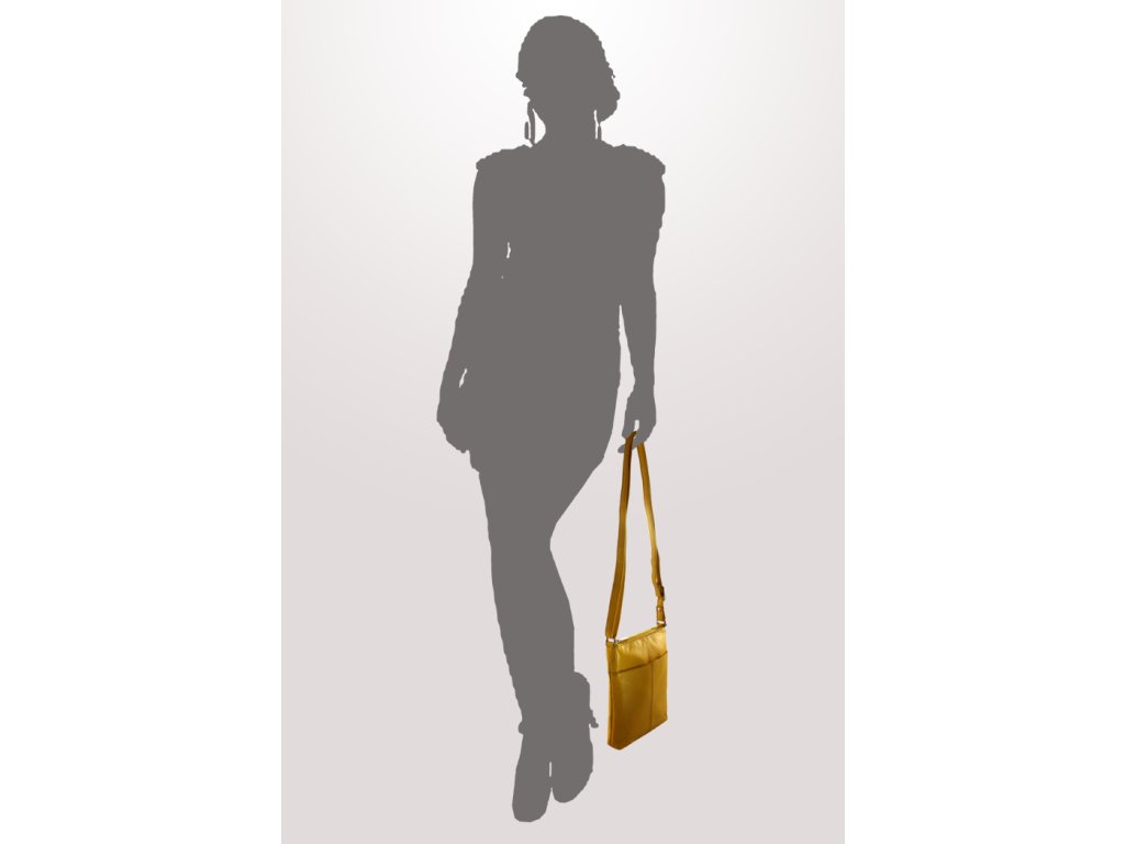 Vnútorné zipsové vrecko, odopínateľný krúžok na kľúče, zrkadlo v koženom púzdre, vonkajšie zipsové a otvorené vrecko, nastaviteľný kožený popruh v max. dĺžke 140 cm.